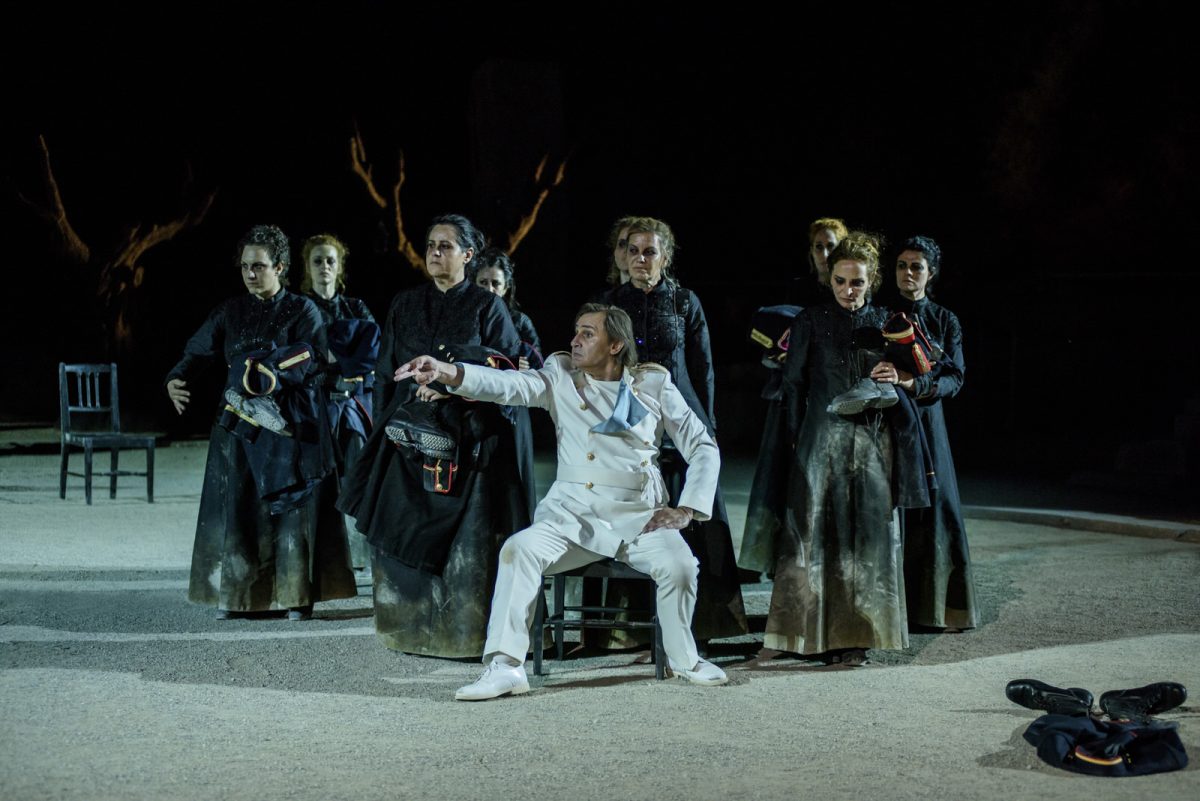 53 χρόνια μετά το μοναδικό της ανέβασμα από το Εθνικό Θέατρο (1966) σε σκηνοθεσία του Τάκη Μουζενίδη και 39 χρόνια από την πρώτη παράσταση του ΘΟΚ στην Επίδαυρο (1980) σε σκηνοθεσία Νίκου Χαραλάμπους, η τραγωδία σκηνοθετείται από τον Καλλιτεχνικό Διευθυντή του Εθνικού Θεάτρου Στάθη Λιβαθινό, σε ένα εγχείρημα που στηρίζεται στη συνεργασία των καλλιτεχνών από την Ελλάδα και την Κύπρο.