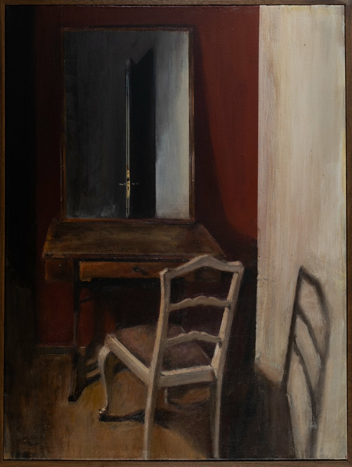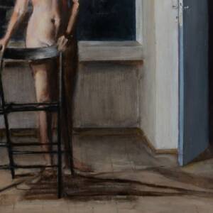 Στους πίνακες της περιόδου μαθητείας στο εργαστήριο του Γιώργου Ρόρρη η ολόσωμη γυμνή παρουσία κυριαρχεί. Οι μορφές, κυρίως γυναίκες μόνες, γυμνές ή και ντυμένες, ανήκουν πάντα σε ένα περιβάλλον σιωπηλό, σε κατάσταση αναμονής. Κατά την διάρκεια της εκούσιας απομόνωσής εξ αιτίας της πανδημίας, μία περίοδο όπου η έλλειψη κάθε είδους επαφής έχει επιβληθεί, της δίνεται το έναυσμα να πειραματιστεί με την αυτοπροσωπογραφία. Επιλέγονται όμως και πορτραίτα αντικειμένων, σημειολογικά φορτισμένων, που παραπέμπουν στην αναχώρηση, στην έλλειψη και διατυπώνουν τη δική τους εικαστική πρόταση. Εδώ το ρόλο του απόντος παίρνει μια καρέκλα, ένα άδειο πιάτο ή ένα είδωλο στον καθρέπτη που αυτονομούνται και λειτουργούν ως σύμβολα της φευγαλέας παρουσίας. Μέσα από την ρεαλιστική αναπαράσταση το σχέδιο και το χρώμα συνεργάζονται άλλοτε πιστά άλλοτε υπαινικτικά. Τα πρόσωπα και τα σώματα ανιχνεύονται με ευαισθησία και τόλμη. Αυτή η προσέγγιση τους προσδίδει μία ποιητική πυκνότητα, έτσι ώστε η ρεαλιστική απόδοση να αποκτά μια αινιγματική διάσταση. Η έμφαση δίνεται κυρίως στο βλέμμα αλλά και στη στάση που υποδηλώνουν εσωστρέφεια και μοναξιά. Τα πρόσωπα στρέφονται προς τον θεατή σε στάση αναμονής, παραδίδονται στη σιωπηλή παρατήρηση και τον καθιστούν αναπόδραστα παρόντα.