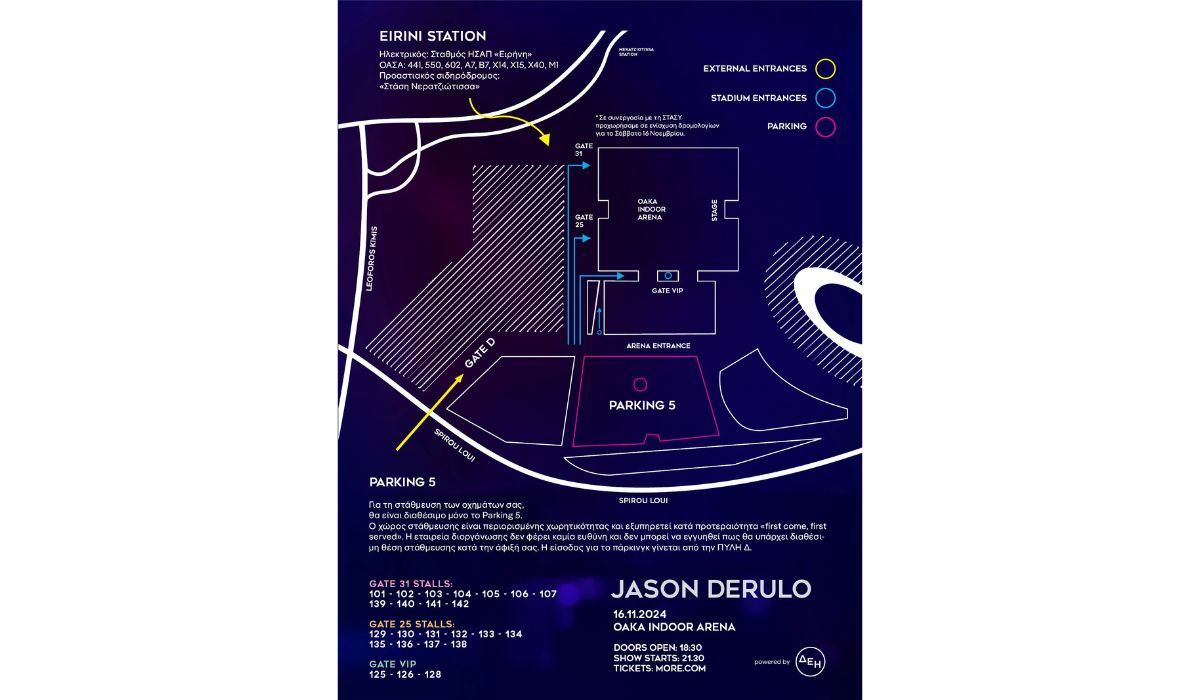 -H πρόσβαση κοινού για τους κατόχους εισιτηρίων ARENA STANDING & VIP STANDING ARENA γίνεται από την είσοδο ARENA.