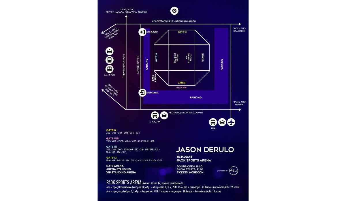 -Για τη στάθμευση των οχημάτων σας, θα είναι διαθέσιμο το πάρκινγκ του Paok Sports Arena.
