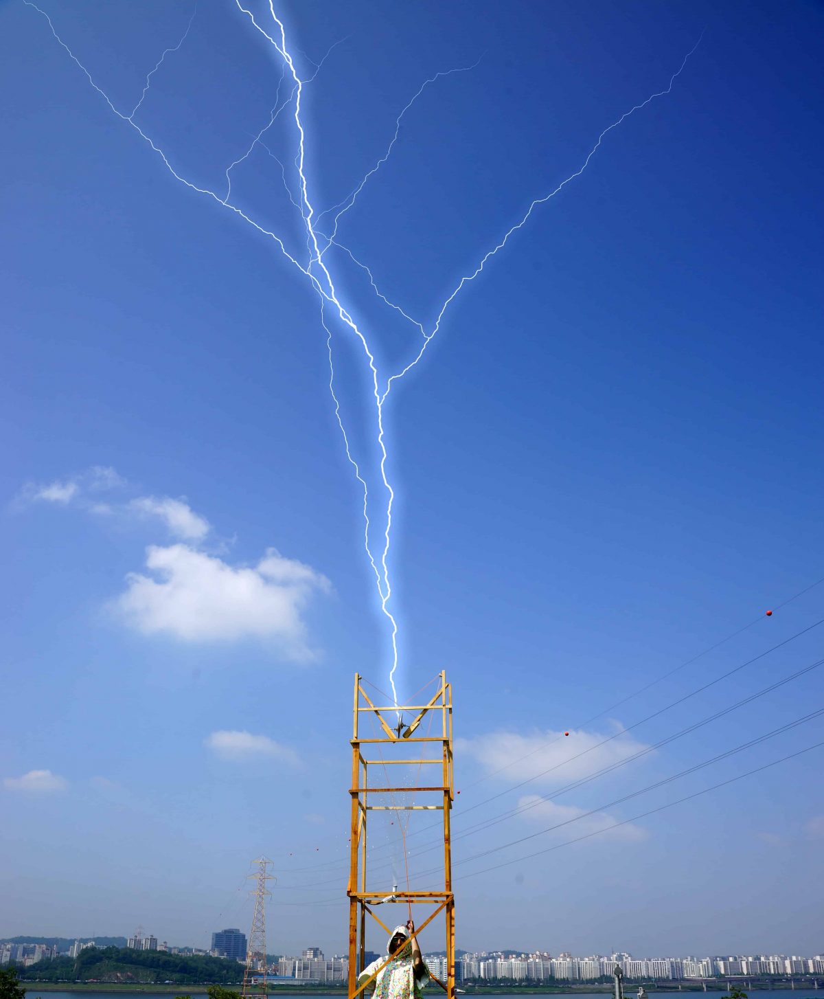 – Κατά δεύτερον στις απόψεις, των οποίων η οπτική υπογραμμίζει τη διάκριση ανάμεσα στον καιρό ως μέσο και στον καιρό ως φαινόμενο. Όπως, μεταξύ άλλων, στις ανάγλυφες φωτογραφίες τοπίου του Ματίας Κέσλερ, που παρουσιάζουν εδώ ένα παράδειγμα του καιρού ως φαινομένου. Ο καλλιτέχνης αμφισβητεί την αυθεντικότητα της φύσης και το εξιδανικευμένο όραμα του σημερινού ανθρώπου για την πρωτοτυπία και το ανέγγιχτο (την παρθενικότητα). Ή, ακόμη, όπως το καιρικό φαινόμενο βροντή/αστραπή – προσλαμβανόμενο ως μέσο – προσομοιώνεται οπτικά και ακουστικά στις βιντεοεγκαταστάσεις «Κεραυνός» του Τόμας Γκλαίντσελ και «Αστραπή» του Άλφρεντ Λέντζ. Μέσα από τα ηχεία ρέει ο ήχος της βροχής ενώ τα subwoofer δημιουργούν τη βαθιά, υπόκωφη βοή του κεραυνού.Το έργο «Αστραπή» του Λέντζ παρουσιάζει έναν ξύλινο σκελετό, φορέα δυο κρουστών λεκανών, οι οποίες ενεργοποιούνται με ένα καλώδιο. Χτυπώντας τις λεκάνες παράγεται σπινθήρας. Βλέποντας το έργο, αναρωτιέται κανείς: είναι αυτό μια πραγματική κατάσταση;
