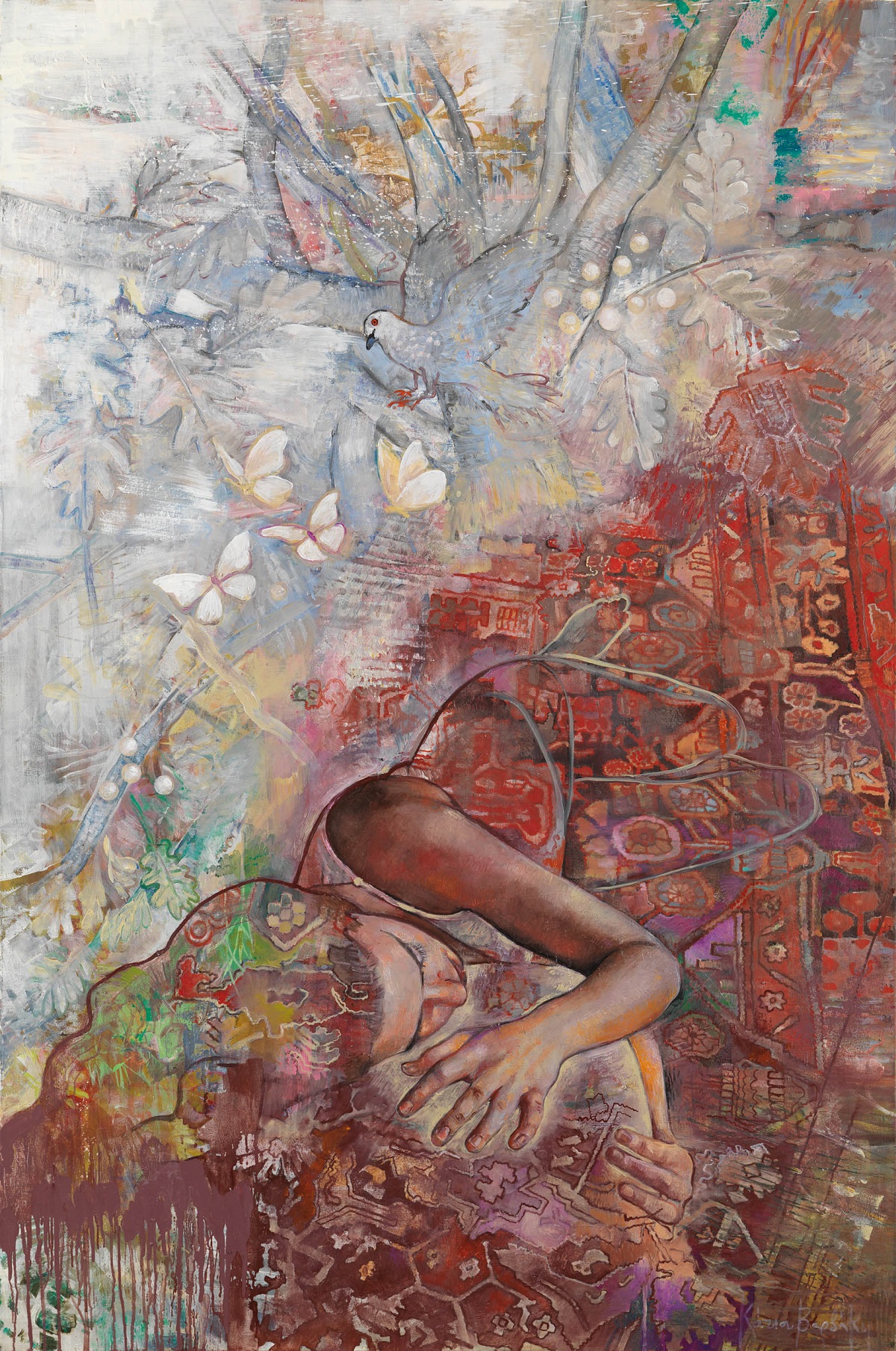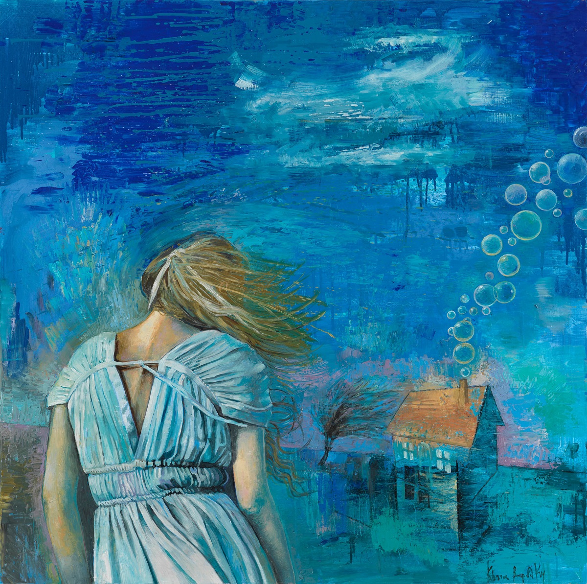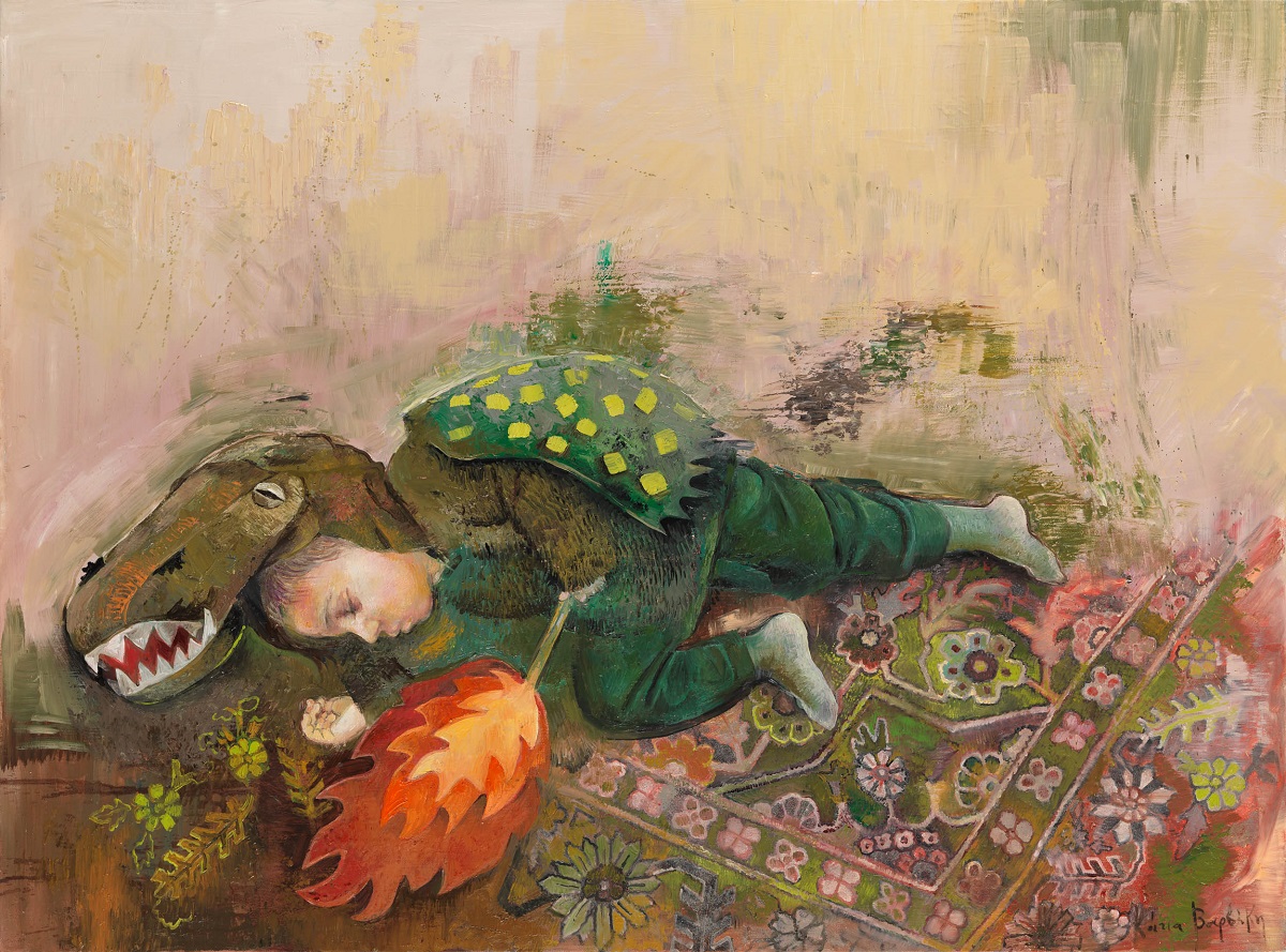 Στα έργα της ζωγράφου εικονίζονται παιδιά που δεν θέλουν να μεγαλώσουν, ενήλικες που θα ήθελαν να ξαναγίνουν παιδιά. Μικρά ενορχηστρωμένα θαύματα συντελούνται πίσω από γυάλινους διάφανους τοίχους, δέντρα μπλε θροΐζουν σε κάμπους άγνωστους, ένας μικρούλης κουρασμένος δράκος αποκοιμιέται τρυφερά και μια Αλίκη μας καλεί σε νέα χώρα θαυμάτων. Στα διάστικτα ετούτα από πυκνά επεισόδια παλίμψηστα πεδία με τα μαγικά ιπτάμενα χαλιά-κήπους, τις ευρηματικές καλειδοσκοπικές διαφάνειες και τα τολμηρά αιωρούμενα χρώματα που συνδέονται με επίπονα επάλληλα σχεδιάσματα, εκτοξεύοντας μωβ, γαλανούς και ρόδινους παφλασμούς εναιωρούμενης ύλης, συναντούμε και γευόμαστε απαλά την άλλη διάσταση των πραγμάτων. Το πέρασμα σε ένα λιβάδι ονείρων, κεντημένο με άγνωστα παραμύθια, μυστικούς γρίφους και χειροποίητα παιδικά αθύρματα, σπαρμένο με λεπτή σκόνη εξαίσιας δαντελωτής μνήμης και συντελεσμένου μα ωσεί παρόντος χρόνου.
