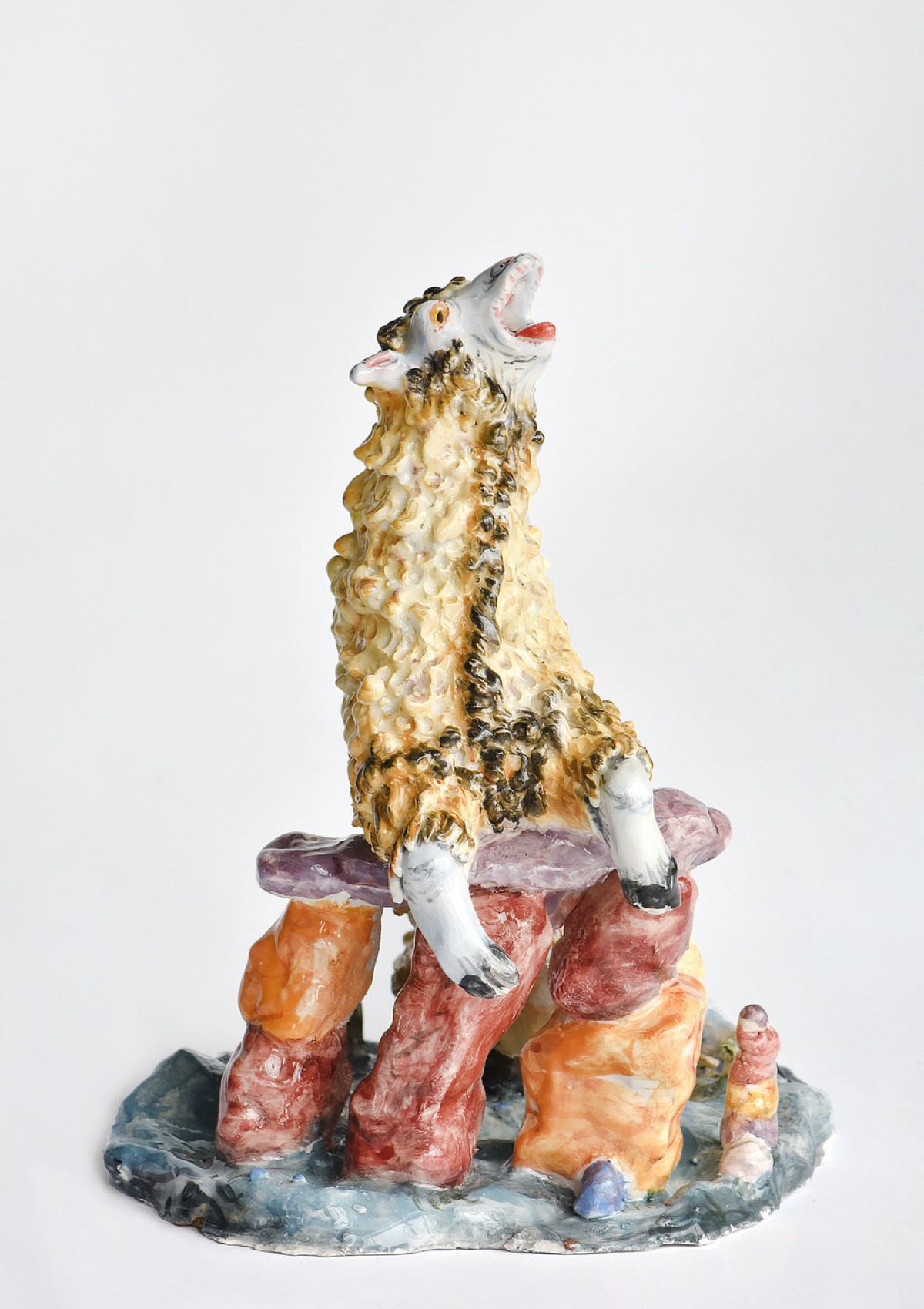 Η υλικότητα των έργων αναδεικνύει την πολυσχιδή πορεία και την εξέλιξη του Λαδιανού ως δημιουργού —φιγούρες που σταδιακά ξεκόλλησαν από τη ζωγραφική επιφάνεια και σιγά-σιγά απέκτησαν τρισδιάστατη υπόσταση: πρώτα μέσα από τα κεντήματα του καλλιτέχνη, στη συνέχεια μέσα από τα μεταλλικά του ανάγλυφα και, πιο πρόσφατα, μέσα από τα κεραμικά γλυπτά. Σε αυτή την μετάβαση από το ένα μέσο στο άλλο, η χειροποίητη υλικότητα των έργων παρέμεινε κεντρική στη σκέψη και τη πρακτική του καλλιτέχνη. Κάθε έργο σχεδιάζεται, κεντάται, σχηματίζεται από πηλό και γυαλώνεται αποκλειστικά από τον ίδιο, από την αρχή έως το τέλος, διατηρώντας μια άμεση και σωματική σχέση με το κάθε αντικείμενο.