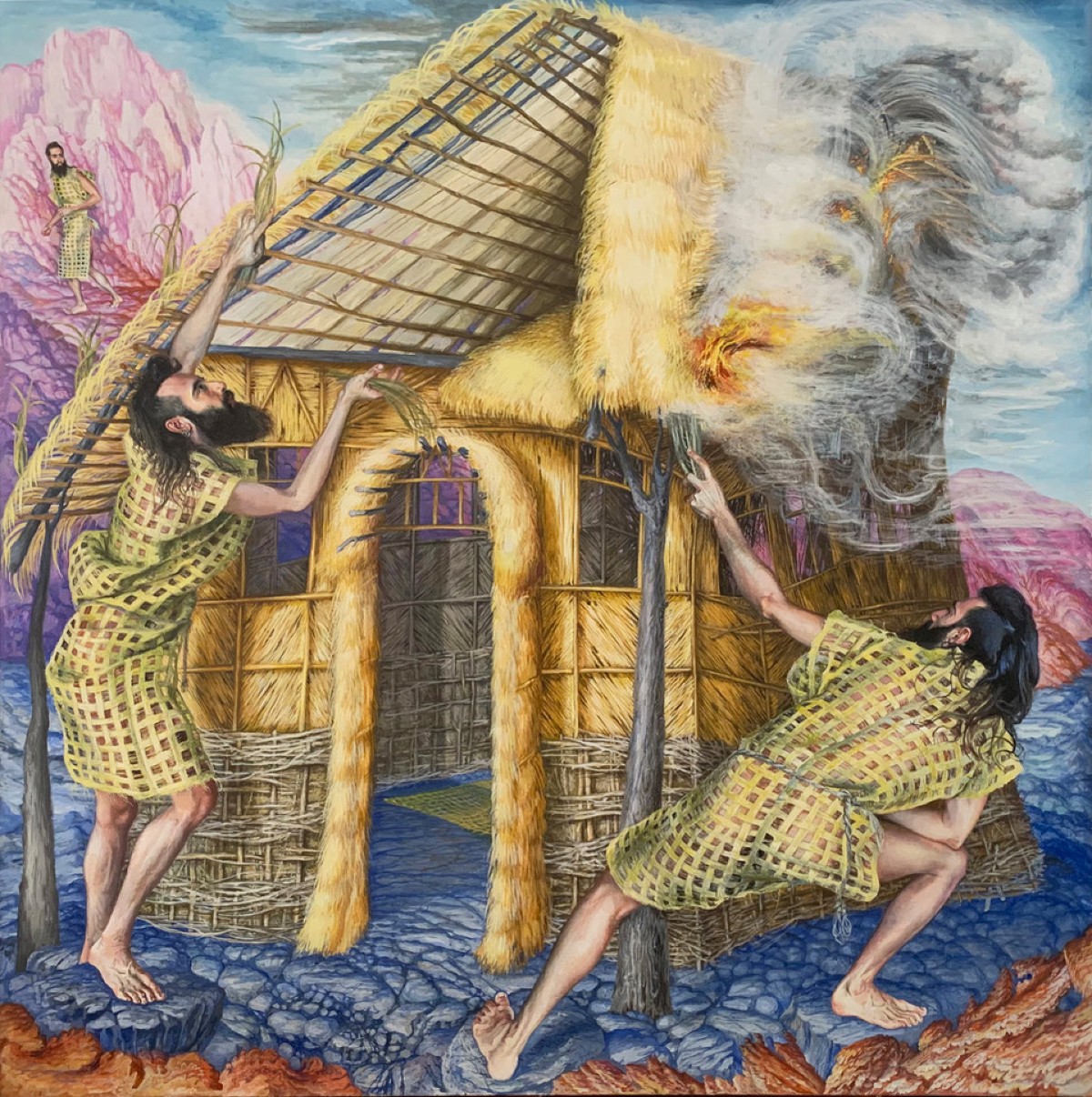 Παρατηρώντας τις καλύτερα, οι μορφές αυτές δεν είναι απλώς δανεισμένες από τα κείμενα, αλλά γεννιούνται μέσα από τη σχέση του καλλιτέχνη με τους δικούς του ανθρώπους. Οι φίλοι του, με τα χαρακτηριστικά και τις προσωπικές τους ιστορίες, εμπνέουν τον Λαδιανό να τους ενσαρκώσει ως τους μυθικούς ή αγιολογικούς αυτούς χαρακτήρες. Έτσι, το προσωπικό μετατρέπεται σε μυθικό και η αυτοβιογραφία του καλλιτέχνη παίρνει τη μορφή παραβολής, δημιουργώντας έναν χώρο όπου το προσωπικό και η καθημερινή εμπειρία συνυπάρχουν με τον μύθο και την αλληγορία.