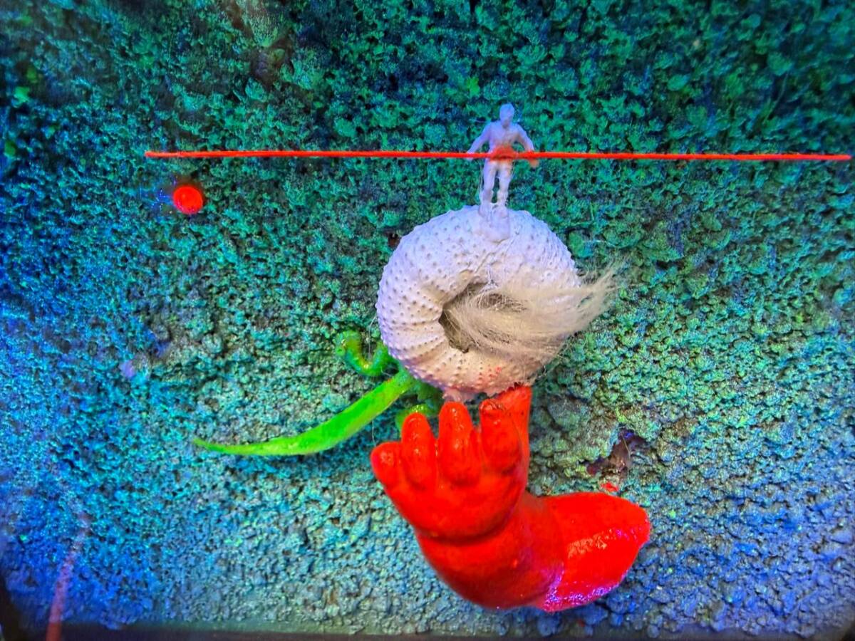 Ο καλλιτέχνης κάνει ένα δυναμικό come back σε έναν οικείο του χώρο και συνεχίζει να αναπτύσσει τη χαρακτηριστική του εικαστική γλώσσα, κινούμενος ανάμεσα στη ζωγραφική, τη γλυπτική και τη σκηνογραφική αντίληψη του χώρου, με έργα που λειτουργούν ως μικρόκοσμοι έντονης αφηγηματικότητας και θεατρικότητας.