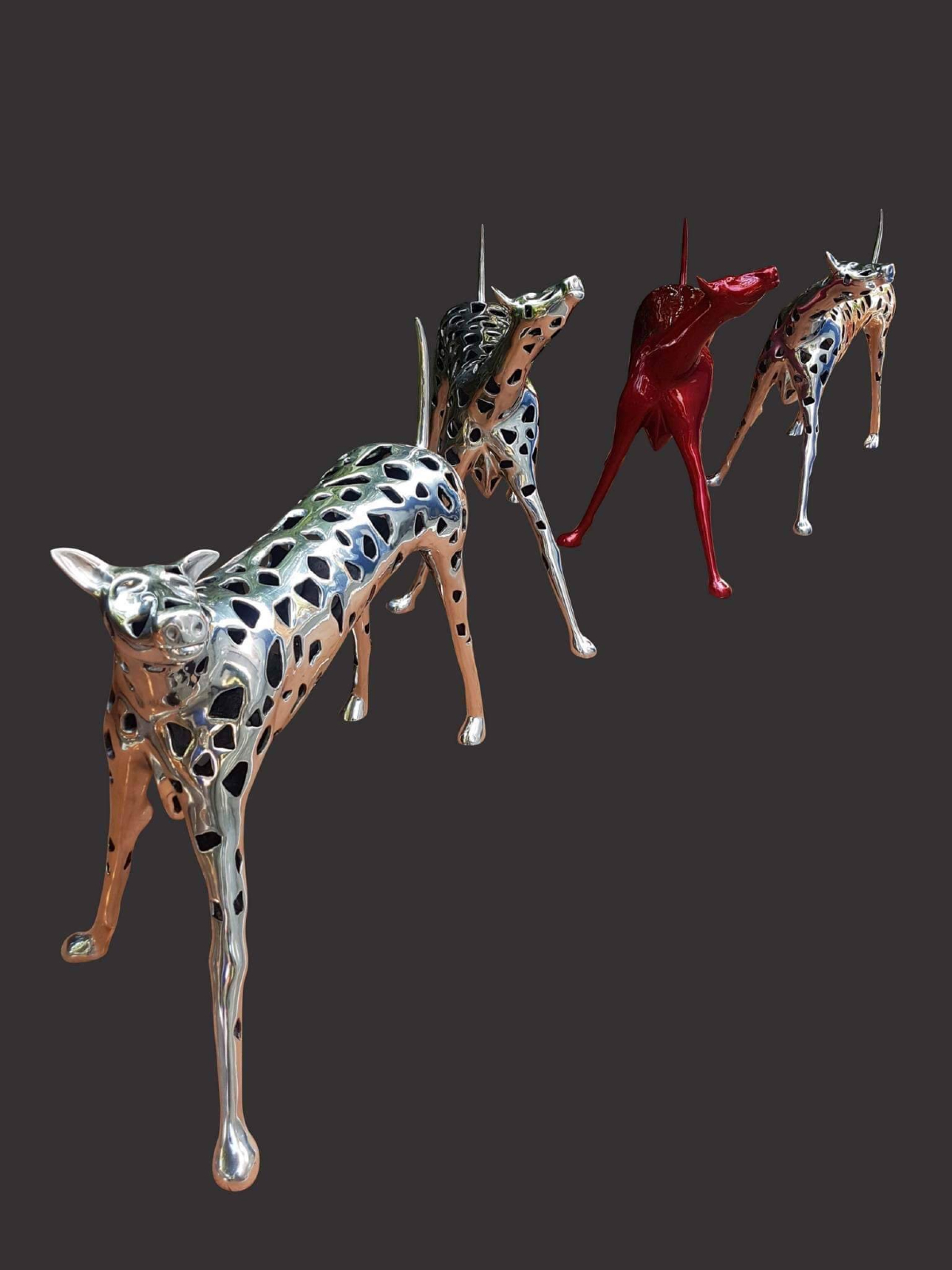 Ανάμεσα στα γλυπτά που θα εκτεθούν, θα υπάρχουν και γλυπτικές εγκαταστάσεις με τους γνωστούς κόκκινους ακροβάτες-χορευτές όπως αυτοί του έργου METEORON, που εγκαταστάθηκε πρόσφατα στην παραλία της Θεσσαλονίκης, καθώς και άλλων ανάλογων γλυπτών μνημειακών διαστάσεων, εγκατεστημένων σε δημόσιους χώρους και πλατείες στην Ευρώπη, την Αμερική και την Κίνα.