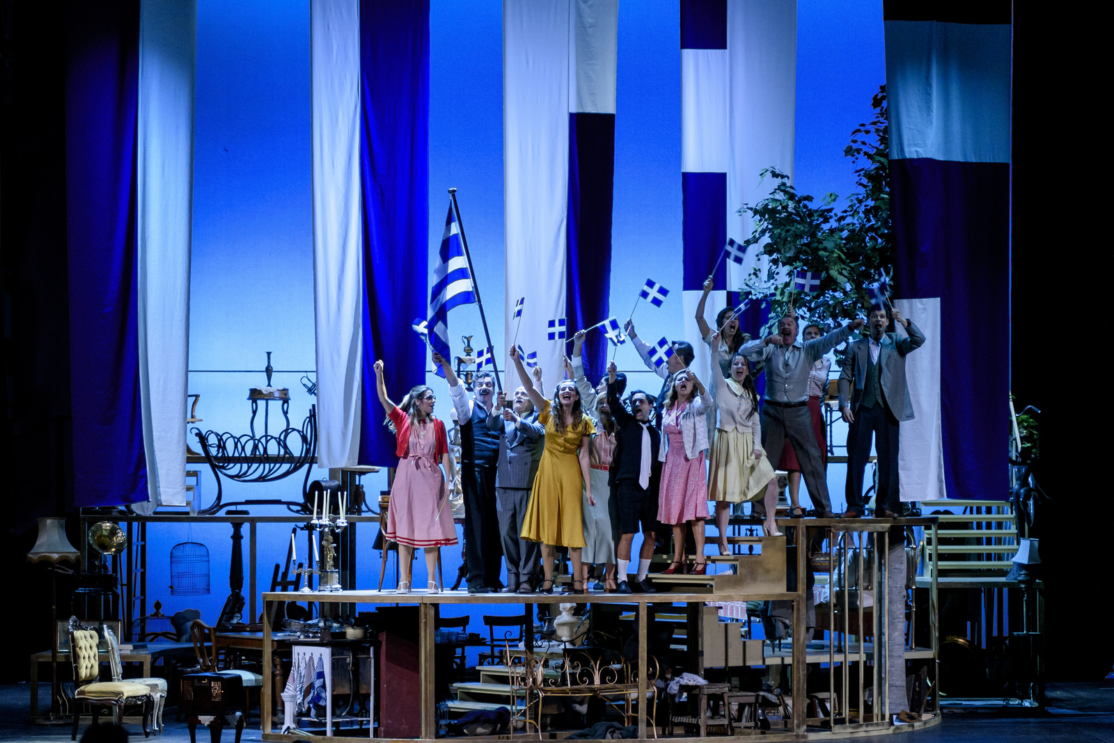 Ο σκηνοθέτης Κωνσταντίνος Μαρκουλάκης με βοηθό την θεατρολόγο Χριστίνα Ματθαίου έφτιαξε μια παράσταση συνόλου που δίχως σκηνοθετικούς ακκισμούς κυλά γοργά και δεμένα σε ένα φόντο γεμάτο μικροπράγματα και πολυεπίπεδες σκηνικές κατασκευές. Τα σκαμπανεβάσματα της ιστορίας αποτυπώνονται στο «φασαριόζικο» σκηνικό του Πάρη Μέξη με τους ηθοποιούς να κινούνται δίχως εμφανή δυσκολία μεταξύ των επιπέδων και των σκαλοπατιών (θυμήθηκα τη λιτή σκηνογραφία της Έλλης Παπαγεωργακοπούλου για το Τρίτο Στεφάνι του 2009, αλλά και του Γιώργου Πάτσα το 2016, οπότε εξ αρχής με το άνοιγμα της αυλαίας δηλώθηκε ότι η τωρινή παράσταση έχει να προσκομίσει κάτι διαφορετικό).