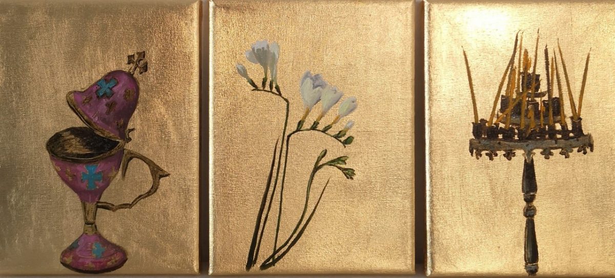 Τα έργα των συμμετεχόντων εικαστικών, κινούμενα από την αφαίρεση έως την ενδελεχή αναπαράσταση και χρησιμοποιώντας διαφορετικά πλαστικά μέσα (ζωγραφική, γλυπτική, εγκατάσταση και φωτογραφία), προτείνουν επάλληλα αυτοτελή αφηγήματα με πολυσχιδείς ερμηνευτικές δυνατότητες για τον θεατή. Εκλεκτικιστικές ασκήσεις ενδελεχούς κυκλαδικής τοπιογραφίας και λευκά αφαιρετικά τοπία πρωτογενούς εντοπιότητας, οικεία αν και απαλλαγμένα από γεωγραφικές συντεταγμένες, ενσταντανέ παλαιάς καλοκαιρινής μνήμης και λανθάνουσες στιγμές ανθρώπων σε σιωπηλή δέηση, συνοπτικά ιερά σήματα και εφευρημένα χειροποίητα αναθήματα μικτής ύλης, προστατευτικά κελύφη προσευχής και ανοιχτά πεδία ενατένισης, αρθρώνουν τη νοητική και απτή ύλη της έκθεσης.
