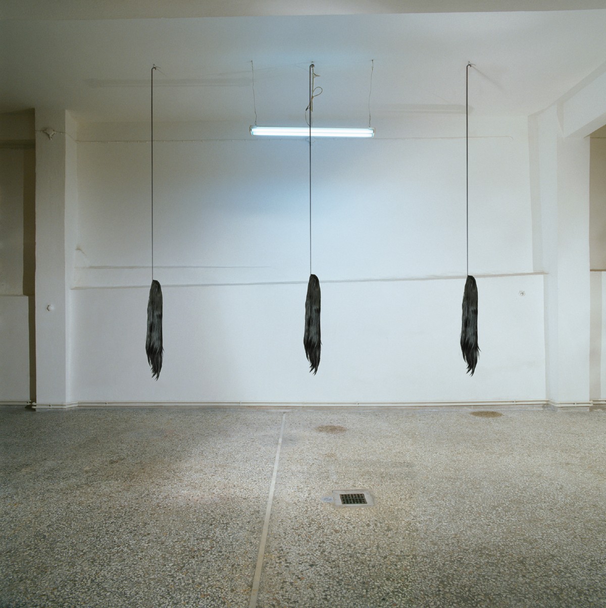 Το ομώνυμο κεντρικό έργο της έκθεσης είναι μια επιβλητική εγκατάσταση με τρεις αιωρούμενους σταυρούς από κλαδιά βελανιδιάς. Το συνοδευτικό βίντεο, τραβηγμένο στη Τζια το 2021, δείχνει τους ίδιους σταυρούς να λικνίζονται υπό το φως του φεγγαριού με ηχητική υπόκρουση τον παφλασμό των κυμάτων. Ο ανυποψίαστος θεατής θα έβλεπε εδώ ένα αμιγώς θρησκευτικό θέμα, όμως η καλλιτέχνιδα αναφέρεται έμμεσα στους επαναστατικούς συμβολισμούς της σημαίας του Ρήγα (ελευθερία, ισοτιμία, αδελφότης), στην αισθητική της ανατροπής, στους κοινωνικούς επαναστάτες του χθες και του σήμερα.