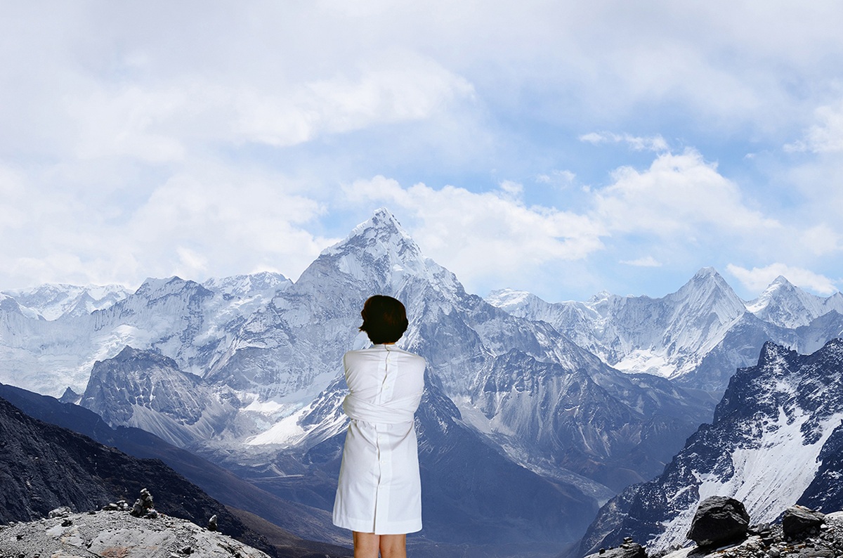 Από το «1.330 γραμμάρια φαιάς ουσίας που συνοψίζουν την ιστορία της ανθρωπότητας, τα πάθη και τις αμφιβολίες της» (2008) – μια εκτύπωση τύπου lambda που απεικονίζει μαύρο γραφίτη σωρευμένο πάνω σε ξύλινο τραπέζι, θέτοντας το φιλοσοφικό ερώτημα «τι είναι πραγματικό και τι ψευδαίσθηση» -έως το ολοκαίνουριο «Άτιτλο» (2025), όπου έχει τοποθετήσει στον έναν δίσκο της ζυγαριάς μια γυάλινη σφαίρα- υδρόγειος χωρίς χώρες, και στον άλλο 37 πιστωτικές κάρτες, ως σχόλιο στους μηχανισμούς του όψιμου καπιταλισμού και την εξάρτησή του από το «πλαστικό» χρήμα, στις δυτικές κοινωνίες, οι επισκέπτες καλούνται να μυηθούν στο εικαστικό λεξιλόγιο και στους διαχρονικούς προβληματισμούς που θέτει η καλλιτέχνις.