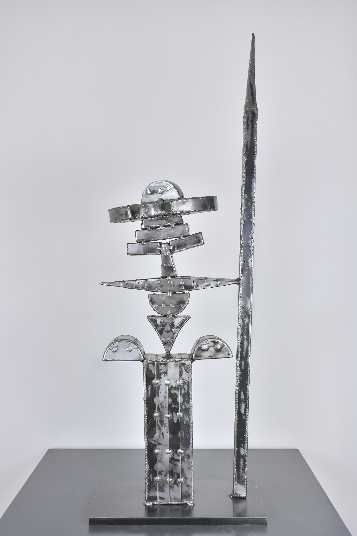 Ο Μιχάλης Αβατάγγελος διερευνά την ένταση ανάμεσα στην ύλη που υποχωρεί και στην ύλη που αντιστέκεται. Συγκολλεί κομμάτια σιδήρου, συνταιριάζοντάς τα με οίστρο, επιμονή και την ακατάπαυστη επινοητικότητα του εικαστικού γλύπτη. Από αυτά τα ταπεινά θραύσματα γεννιούνται θεματικά σύνολα – μικρές μεταλλικές αφηγήσεις που υπερβαίνουν τη φυσική ακαμψία του υλικού και του εμφυσούν κίνηση, χαρακτήρα και μια ιδιότυπη πνοή ζωής. Τα θέματά του αναδύονται οργανικά από την καθημερινότητα: ζώα, φυτά, ανθρώπινες μορφές, καράβια, αλλά και καθαρές γεωμετρίες που μετατοπίζουν τη ματιά από το παραστατικό προς το αφαιρετικό. Έτσι, συγκροτείται ένα πολυδιάστατο εικαστικό λεξιλόγιο, όπου το βαρύ, σκληρό μέταλλο μεταμορφώνεται σε φορέα ευαισθησίας. Στα έργα του, οι αδρές επιφάνειες δεν λειτουργούν ως απώθηση αλλά ως πρόσκληση. Φέρουν ίχνη χειρονομίας, θερμότητας και κόπου, αποκαλύπτοντας μια σπάνια σχέση οικειότητας με το υλικό∙ μια σχέση που δεν εξημερώνει το μέταλλο αλλά το αφήνει να διατηρεί την πρωταρχική του δύναμη. Μια απροσδόκητη ποιητική χροιά διαπερνά τον όγκο και το περίγραμμα των έργων, σαν μια μυστική, μειλίχια ανάσα που ηρεμεί το άκαμπτο υλικό χωρίς ποτέ να το ακυρώνει. Αυτή η λεπτή ισορροπία – ανάμεσα στη σκληρότητα και την ευαλωτότητα – καθιστά το έργο του Αβατάγγελου μια διαρκή αναζήτηση μεταμόρφωσης, όπου το μέταλλο αποκτά φωνή. Το έργο του δεν περιορίζεται στην υλική επιφάνεια· ανοίγει έναν χώρο ερμηνείας όπου η ύλη γίνεται φορέας εμπειρίας, σχέσης και μεταμόρφωσης. Η γλυπτική αποτελεί το προνομιακό σημείο της έκφρασής του∙ εκεί όπου ο διάλογος ανάμεσα στο υλικό και την πρόθεση αποκτά τη μεγαλύτερη ένταση.