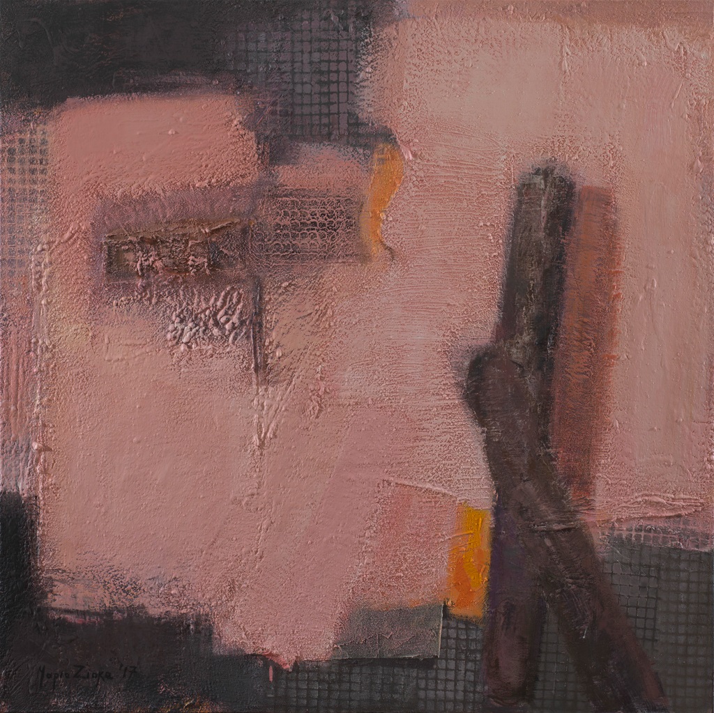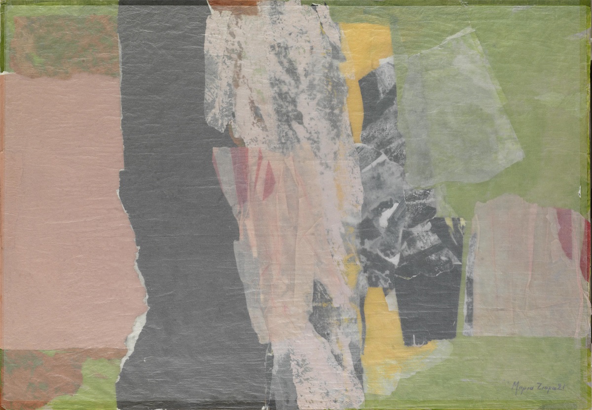 Τα «απομεινάρια» (Remains), σπαράγματα παλαιότερων χαρακτικών και ζωγραφικών της συνθέσεων, γίνονται τα βασικά στοιχεία μιας εκτεταμένης ενότητας δουλειάς της Μαρίας Ζιάκα τα τελευταία χρόνια. Τα «απομεινάρια» επεξεργάζονται εκ νέου (με ακρυλικά χρώματα, σκόνες, άμμο ή γάζες), ενώ οι εικόνες που προκύπτουν μέσα από αυτήν τη διαδικασία πρακτική καλύπτονται με μεγάλες λευκές, τις περισσότερες φορές, επιφάνειες. Μια δεύτερη ενότητα (Μεσοδιάστημα) κινείται σε αντίστοιχο πνεύμα συνδυάζοντας τη ζωγραφική και τη χαρακτική με την τεχνική του κολάζ και τη χρήση διάφανων υλικών. Τα έργα των συγκεκριμένων ενοτήτων συγκροτούν ενιαία εικαστική πρόταση, είναι αποτέλεσμα συστηματικής μελέτης και προσήλωσης, επίμονης άσκησης, οξείας παρατήρησης και συνεχούς πειραματισμού. Πρόκειται για έργα που συμπυκνώνουν και εξελίσσουν τις μέχρι τώρα αναζητήσεις της δημιουργού τους, φέροντας «μνήμες» από προηγούμενες ενότητες δουλειάς της, για έργα που διακρίνονται πρωτίστως για την ξεχωριστή ευαισθησία που αποπνέουν. Ξεκινώντας από την ορατή πραγματικότητα, προχωράει σε μια διαφορετική αντίληψη θέασης και ερμηνείας του κόσμου, μεταγράφει το τοπίο μέσα από εικαστικές αξίες, το αποδίδει ως αφηρημένη σύλληψη, ως πνευματική εμπειρία, ως ψυχική και συναισθηματική κατάσταση, επικαλούμενη μια βαθύτερη, πιο εσωτερική επικοινωνία, αναφερόμενη παράλληλα στην ανθρώπινη συνθήκη και στην υπαρξιακή αγωνία.