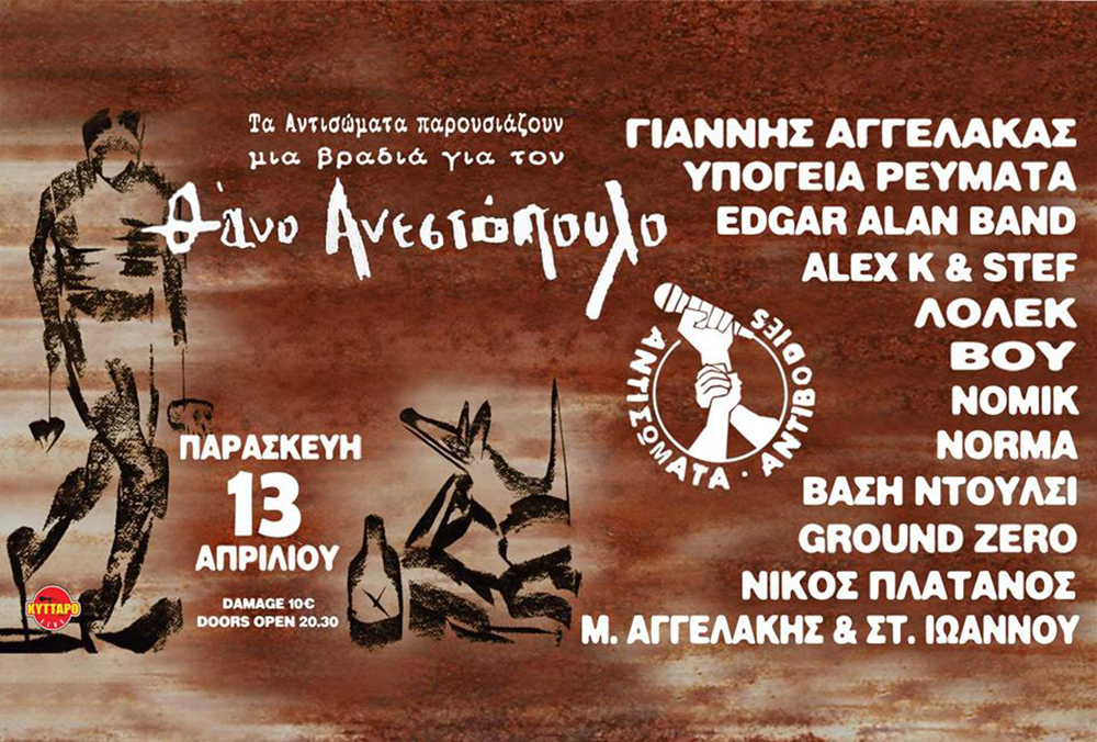 Θα τον τιμήσουμε με καλεσμένους μουσικούς που είχε επιλέξει να συνεργαστεί στην πορεία του μετά τα Κρίνα: Γιάννης Αγγελάκας, Υπόγεια Ρεύματα, The Boy, Λόλεκ, Edgar Alan Band, Alex & Stef, Νomik, Βάση Ντουλσι, Μανώλης Αγγελάκης και Στάθης Ιωάννου, Norma, Νίκος Πλάτανος και Ground Zero.