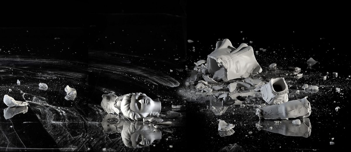 Η εικαστικός χωροθετεί, με χρονοεξαρτώμενα μέσα, θραύσματα μιας ιστορίας ραγίσματος διαρκείας, αμετάκλητου θρυμματισμού όλων αυτών που καταρρέουν, σε αντιπαράθεση με μια στιγμή ανεξέλεγκτης ελευθερίας, ως ανάκληση μνήμης μιας παιδικής αυθόρμητα εκδηλούμενης, ανέφελης χαράς.