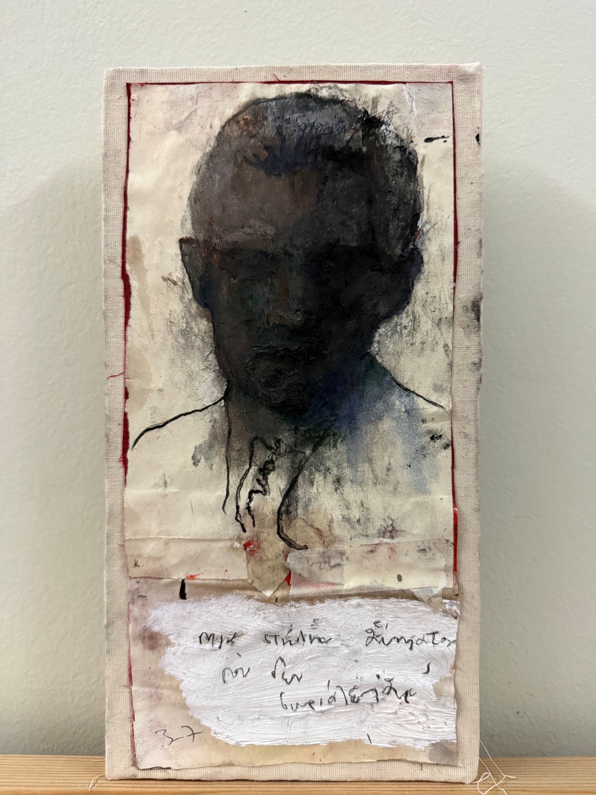 Κεντρική εικόνα θέματος: Αριστερά – Κronstadt, 2025, mixed media, 40 x 40 cm | Δεξιά – I, 2025, mixed media, 20 x 25 cm