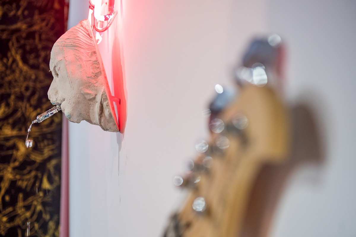 Η έκθεση είναι στημένη μέσα σε μία αρχιτεκτονική κατασκευή ενός υπερκύβου ως αναφορά στον αρχαιολογικό χώρο της Ελευσίνας, κάτι ανάμεσα σε ερείπιο που μπορεί να υπήρξε πριν από χιλιετίες αλλά και σε ένα ακαθόριστο – αποκαλυπτικό μέλλον. Ένας ιερός ναός μέσα στον οποίο ο επισκέπτης καλείται να ξεκινήσει ένα ταξίδι ανακάλυψης και αποκάλυψης, μια συμβολική μετάβαση στον Κάτω Κόσμο μετ’ επιστροφής. Τα διαφορετικά έργα τέχνης που βρίσκονται στο ιερό αυτό έδαφος εμπνέονται και απηχούν θέματα και μοτίβα των Μυστηρίων – τον κύκλο του θανάτου και της αναγέννησης, τη γονιμότητα και τη θνητότητα, τις τελετές μύησης και τις τελετουργίες, τις παραισθήσεις και τα οράματα, ενώ, παράλληλα, κυριαρχεί το αποκρυφιστικό, το σκοτεινό και το ψυχεδελικό στοιχείο.
