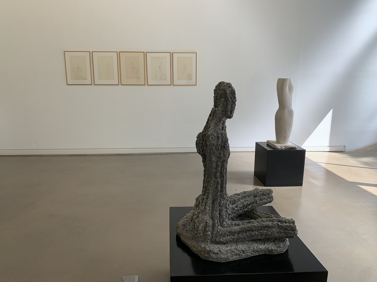 Τα γλυπτά προεξέχουν σαν αρχέτυπα, ιερατικά σημεία στίξης του σύμπαντος, και αποτελούν την αρχή της μακράς εξερεύνησης της Πάστρα με τη γεωμετρία ενός νοητού συστήματος δόμησης. Ταυτόχρονα, η σειρά με τα λεπτοφυή σχέδια στον τοίχο αποτελούν την ωραιότερη άσκηση εμφύσησης πνοής στην ουσία της ανθρώπινης ύπαρξης, μία σειρά από κινούμενες γραμμικές ελεγείες, όπου η σιλουέτα εμψυχώνεται και θροίζει σαν ιαπωνικό χαϊκού. Στον ίδιο χώρο, δύο πρώιμα γλυπτά, ο αμφορέας και η λευκή, λιτή γυναικεία φιγούρα από γύψο, μας μεταφέρουν στη γνώση της προσθαφαίρεσης του υλικού που της μεταλαμπάδευσε ο καθηγητής της στη Βιέννη Fritz Wotruba.