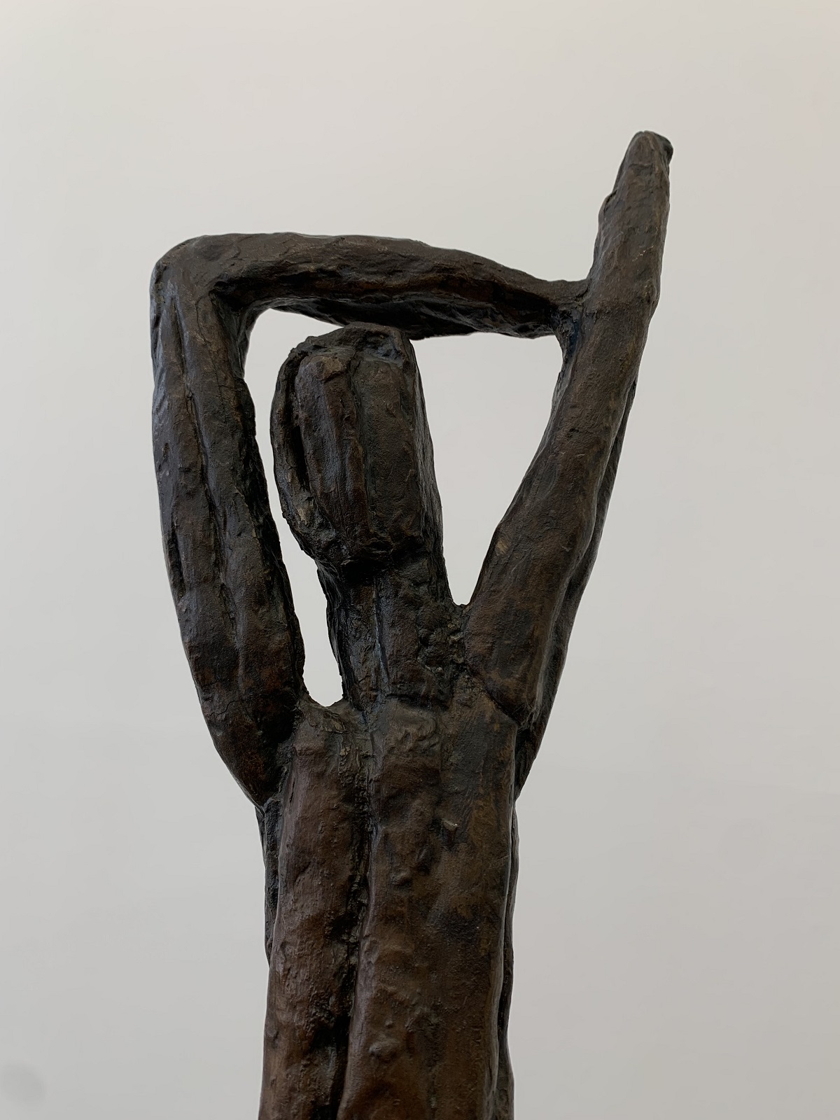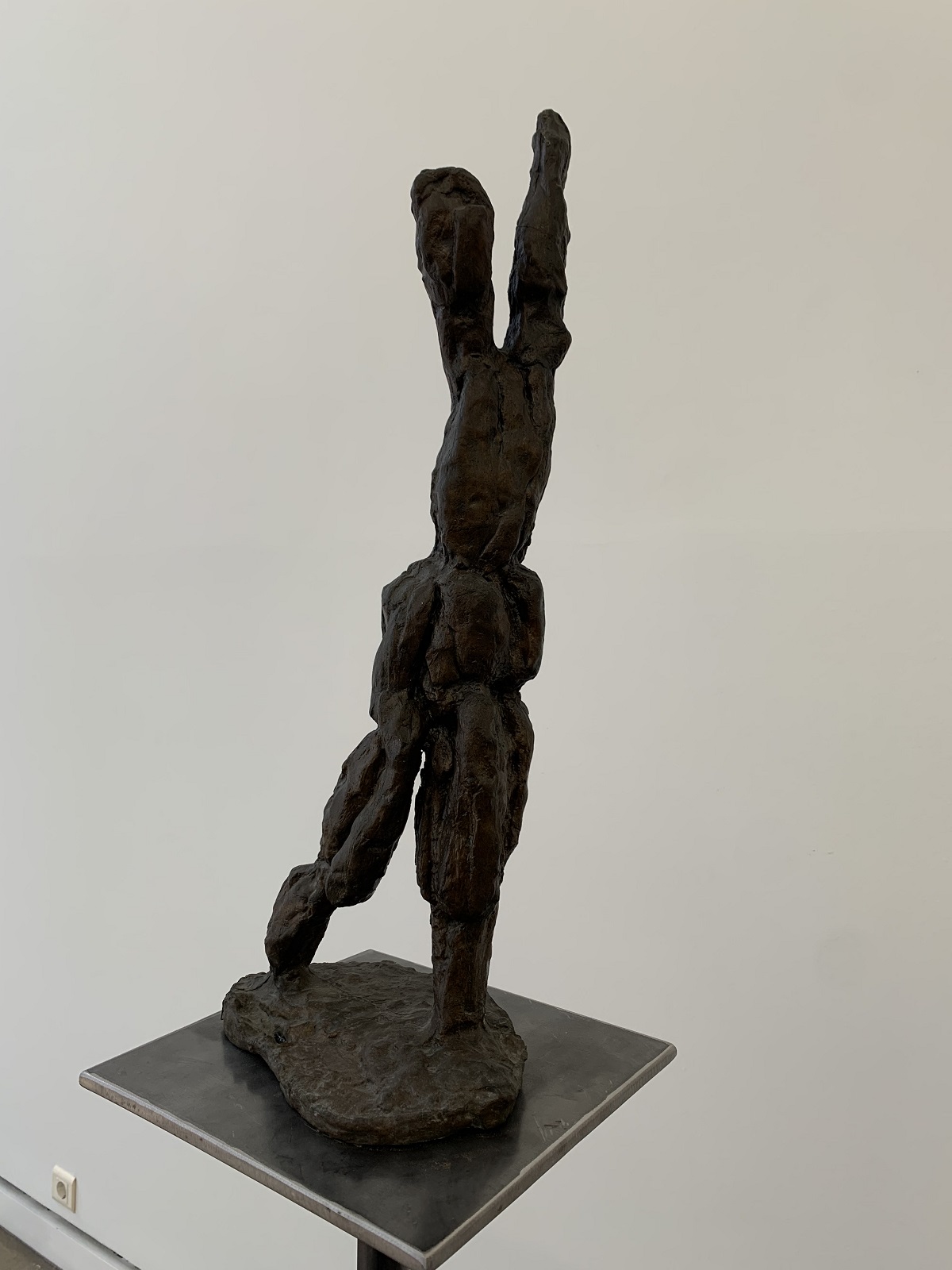 Αυτά τα γλυπτά, με την αρχαϊκή τους θωριά και τα σχεδόν ζωώδη μέλη, φέρουν μία ζωική ορμή θυμίζοντας τους Σκλάβους του Michelangelo που αναδεύονταν μέσα από την πέτρα για να αδράξουν την πολυπόθητη ελευθερία τους, μία πράξη που χαρακτηρίζει το πνεύμα της εικαστικού. Μέσα στα μέλη-άξονες αυτών των άφυλων πρώιμων avatars, μπορούμε να διακρίνουμε αυλάκια και χάσματα, τους μύες και τους τένοντες, αλλού σαν περίτεχνοι κόμποι, αλλού σαν τεντωμένα σκοινιά, έτοιμα να αναμετρηθούν με τα στοιχεία της φύσης αυτά τα στιβαρά και ταυτόχρονα αιθέρια όντα, επιχειρώντας τον πρώτο βηματισμό ωσάν αρχέγονοι κούροι. Αυτά τα έργα μας δίνουν τη σπάνια ευκαιρία να εισχωρήσουμε στην περιπέτεια της γλυπτικής πράξης, η οποία δεν επιθυμεί να εμπλακεί σε μπαρόκ μαιάνδρους, διατηρώντας πάντα τη γραμμική της, στεντόρια ισορροπία.