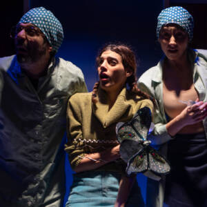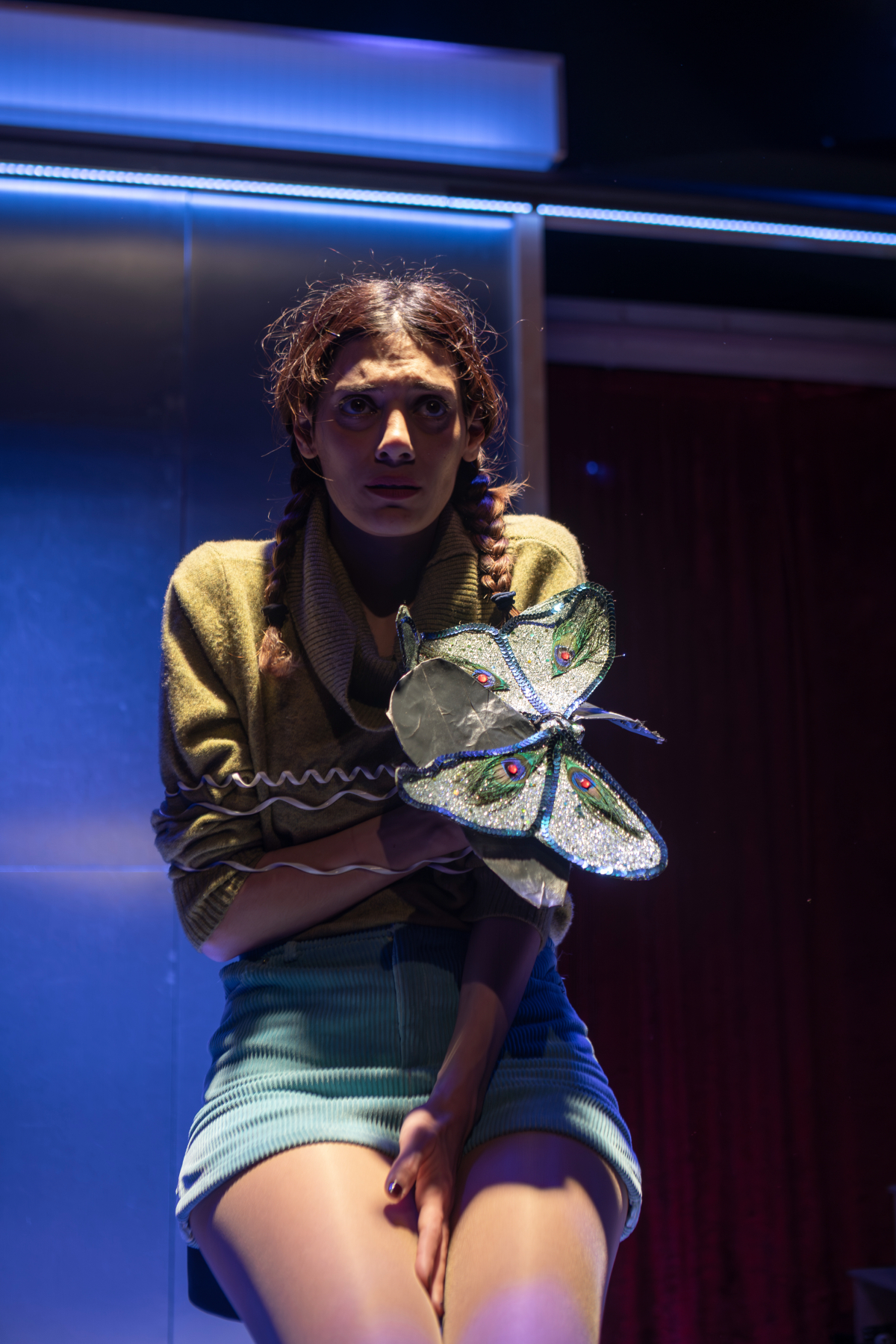 Η ιστορία μας έχει να κάνει και με επιστροφή στα ’90s και τα 2000s, γιατί είναι ένα flashback όλη η παράσταση. Η Αγάπη ξεκινά στο κρεβάτι της εντατικής και από εκεί γυρνάει πίσω, παρουσιάζοντας όλες τις καθοριστικές στιγμές της ζωής της που την έφτασαν εκεί και τι κατάλαβε από όλο αυτό. Επειδή επιστρέφουμε πίσω και τη βλέπουμε ως παιδάκι, ως έφηβη, στη σχολή της… αυτό δημιουργεί μια ανάγκη για ελαφράδα στην αποτύπωση και όχι για ρεαλισμό. Έτσι είναι γραμμένο το έργο. Όταν το διάβασα, δεν μπορούσα να σκεφτώ κάτι άλλο.