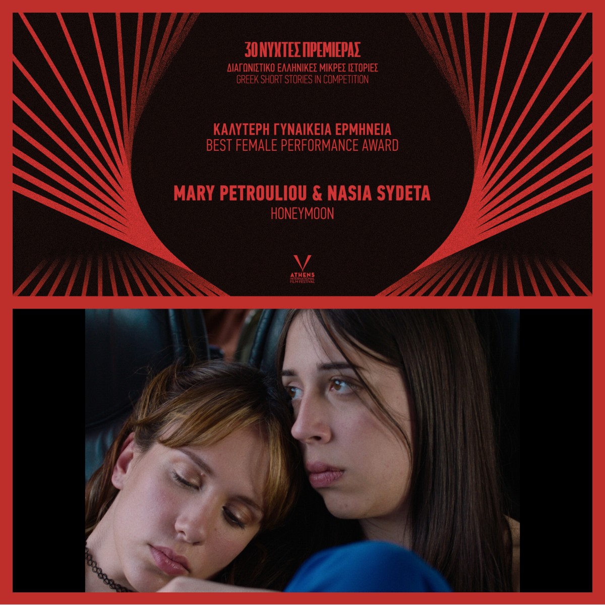 - Καλύτερη γυναικεία ερμηνεία: Μαίρη Πετρούλιου & Νάσια Συντέτα (“Honeymoon”)