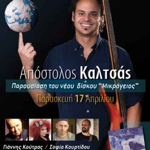 Ο συνθέτης και τραγουδοποιός Απόστολος Καλτσάς, μπασίστας επί σειρά ετών των Υπογείων Ρευμάτων, επιστρέφει την Παρασκευή 17 Απριλίου στο Ρυθμός Stage για να παρουσιάσει τα τραγούδια της δεύτερης δισκογραφικής του δουλειάς με τίτλο Μικρόγειος.