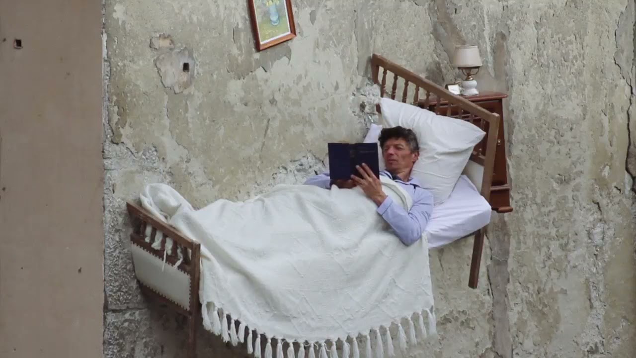 Στο έργο του με τίτλο «μέσα-έξω» ο καλλιτέχνης διαβάζει ανέμελα ένα βιβλίο σε ένα κρεβάτι το οποίο αιωρείται πάνω από το έδαφος ενώ σε ένα άλλο έργο με τίτλο «tableau vivant» ή «ζωντανή ζωγραφική» πίνει ένα ποτήρι κόκκινο κρασί σε ένα τραπέζι που επίσης αιωρείται πάνω από το έδαφος. Ο Tierri, στην ουσία “κόβει” και “ράβει” κοινά οικιακά αντικείμενα στις προσόψεις εγκαταλελειμμένων κτιρίων.