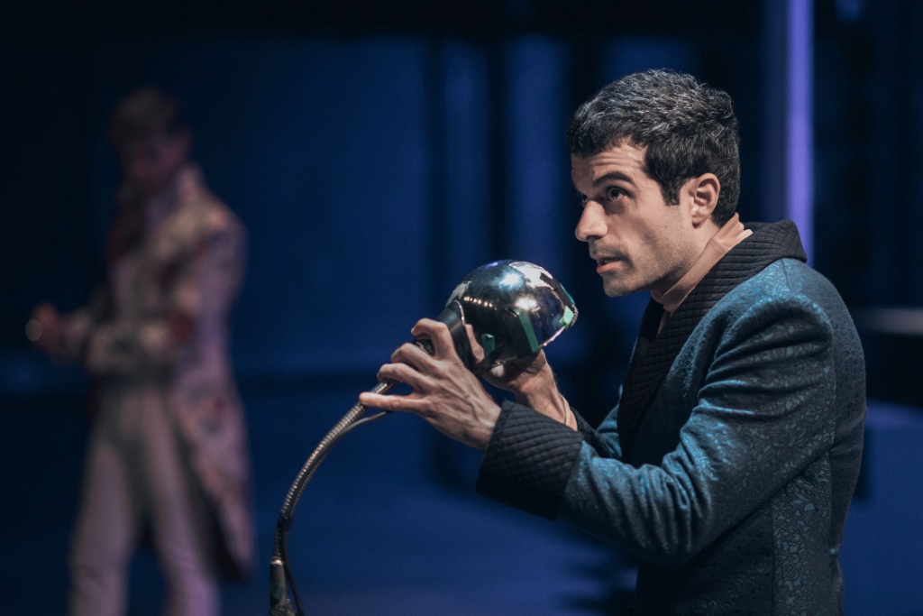 Με αυτό τον τρόπο, έξι γιγάντια κάδρα δεσπόζουν, εξαρχής, στο κέντρο της σκηνής. Από μέσα τους ξεπηδούν σταδιακά οι έξι ήρωες του Μολιέρου, για να παρουσιάσουν τον εαυτό τους σε τρεις διαφορετικές εκδοχές, οι οποίες συνθέτουν διαλεκτικά για τον καθένα τη μία και μοναδική, αληθινή του όψη.