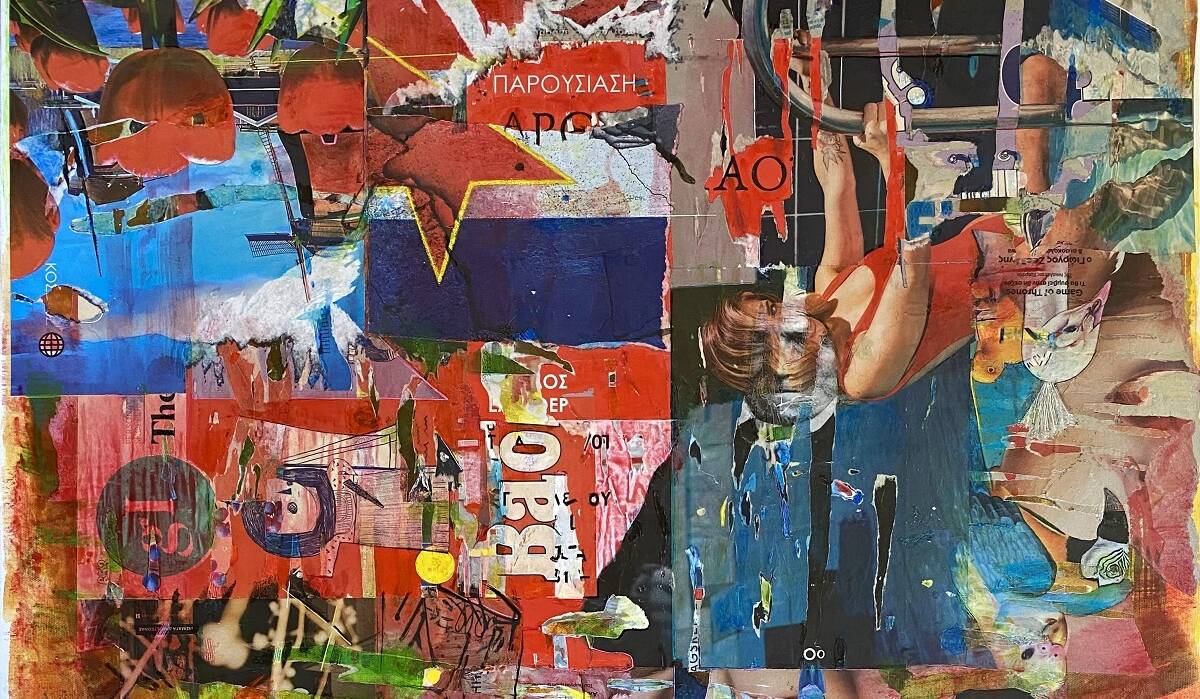 Κεντρική φωτογραφία θέματος: Konstantinos Patsios,The secret life of Birds, 80x80cm, painting and collage on canvas, 2023