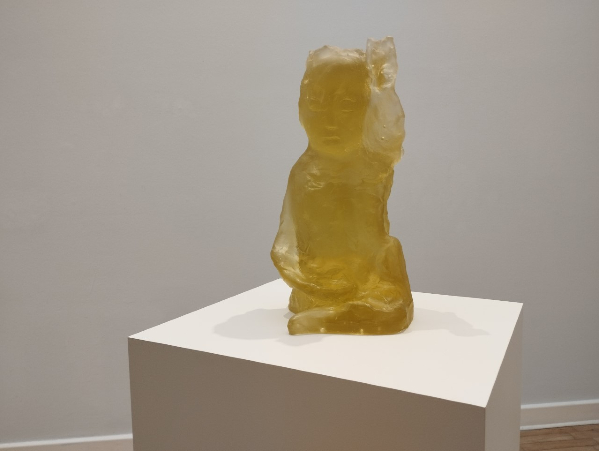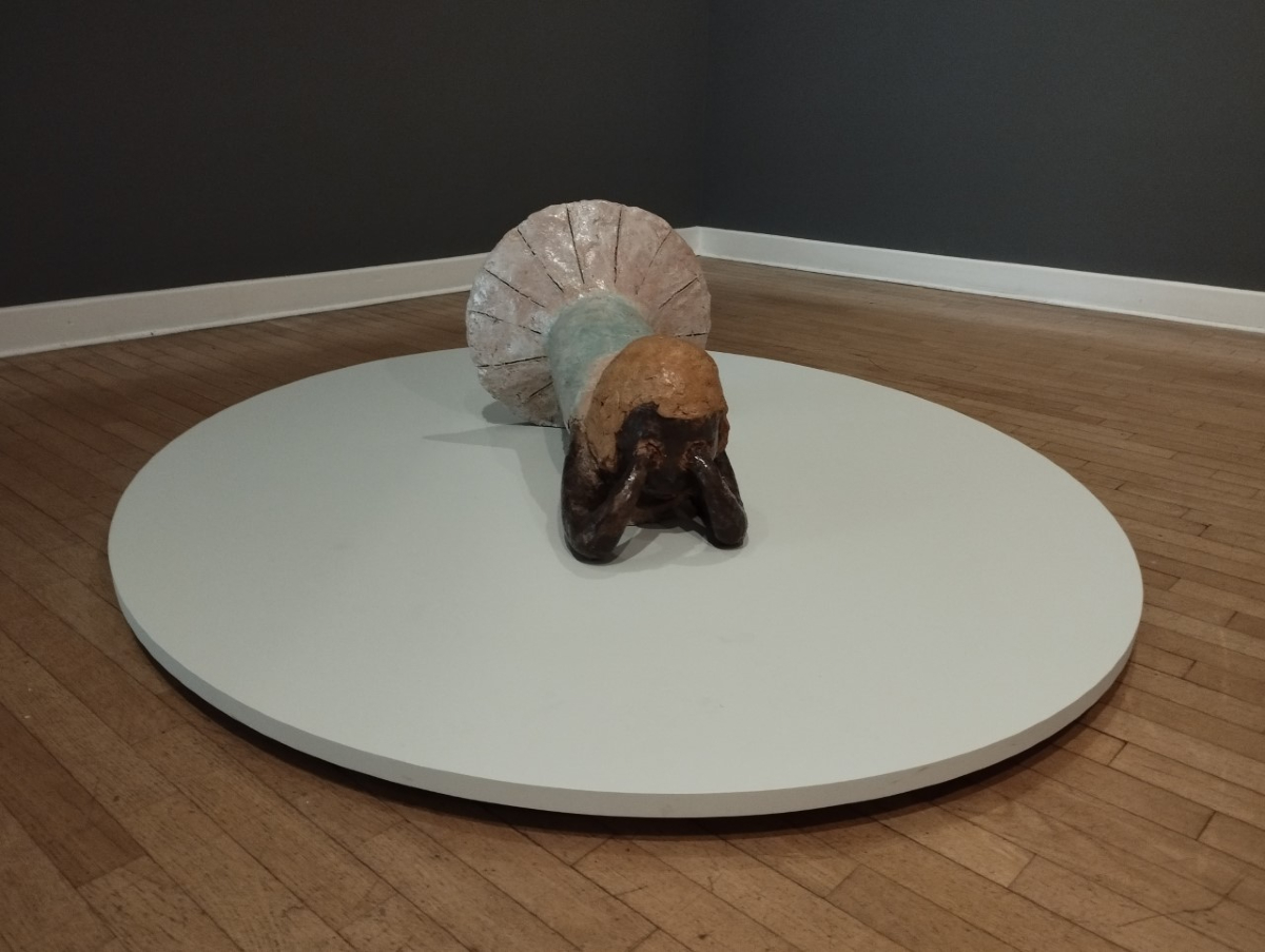 Στην εγκατάσταση με ήχο και βίντεο στο φόντο, η οριζόντια στάση της ξαπλωμένης φιγούρας θυμίζει ταφικά γλυπτά της δυτικής παράδοσης. Τα χαρακτηριστικά του προσώπου είναι ακαθόριστα, το σώμα έχει «σκαφτεί» και το εσωτερικό του παραμένει προσβάσιμο στη ματιά μας. Η φιγούρα βρίσκεται σε έναν ενδιάμεσο τόπο, ανάμεσα στη ζωή και το θάνατο, στην ακμή και την παρακμή. Στο βίντεο ζωγραφικά έργα της καλλιτέχνιδας συγχωνεύονται, καθώς τοπία αλλάζουν αργά. Στην επιφάνεια εμφανίζονται πρόσωπα που μοιάζουν άυλα και διασχίζουν τα τοπία, προωθώντας τη μεταμόρφωση μέσα από την αέναη κίνηση και αλληλεπίδραση των προσώπων και των τοπίων.