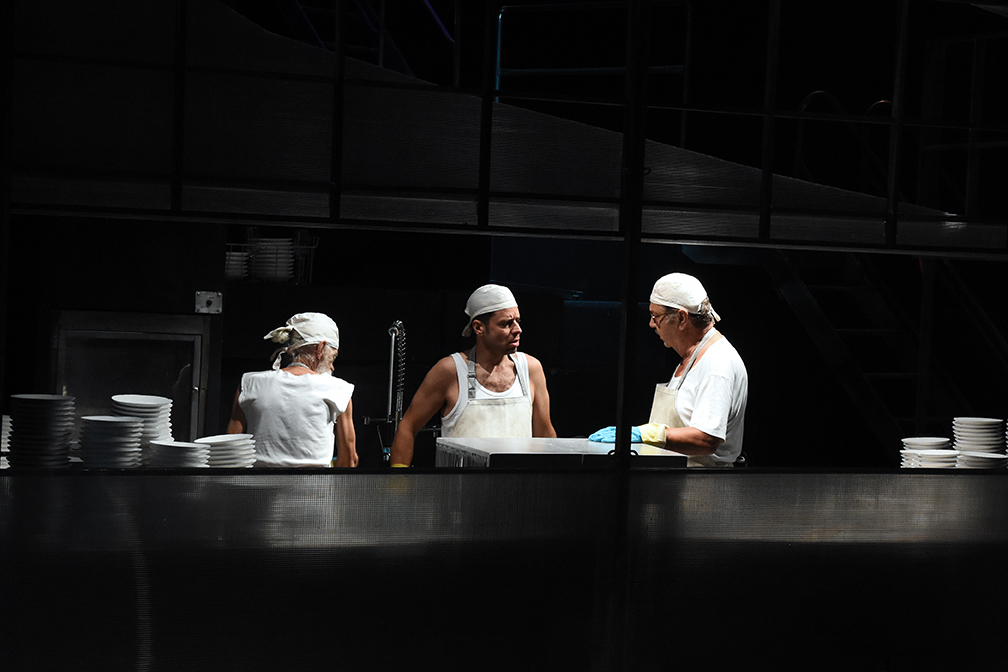 Τρεις άνδρες βρίσκονται στο υπόγειο ενός πανάκριβου εστιατορίου. Αθέατοι στον πάνω κόσμο που τους στέλνει τ’ άπλυτά του. Μπροστά τους, εντυπωσιακά ψηλές στοίβες πιάτων. Ο Ντρέσλερ, ο μεγαλύτερος, είναι ο τυραννικός σχεδόν προϊστάμενος λαντζέρης, για τον οποίο το πλύσιμο των πιάτων είναι τέχνη, καθήκον, αξιοπρέπεια. Ο Μος, ο καταπονημένος συνάδελφός του μοιάζει να ήταν εκεί πάντα και ο νεαρός Έμετ είναι ο “νέος” που μαθαίνει τη δουλειά. Ο Έμετ ήταν κάποτε πλούσιος, πελάτης του εστιατορίου, που τώρα έχει χάσει τα πάντα και βρίσκει στη δουλειά αυτή μια προσωρινή λύση. Προερχόμενοι από διαφορετικές κοινωνικές τάξεις και παγιδευμένοι σαν ήρωες του Μπέκετ σε μια ατέρμονη επαναληπτικότητα, σχεδόν σ’ ένα κενό χρόνου, οι ήρωες του Panych συζητούν για το νόημα της δουλειάς τους, για το νόημα της ίδιας της ζωής. Υπάρχει, ωστόσο, νόημα;