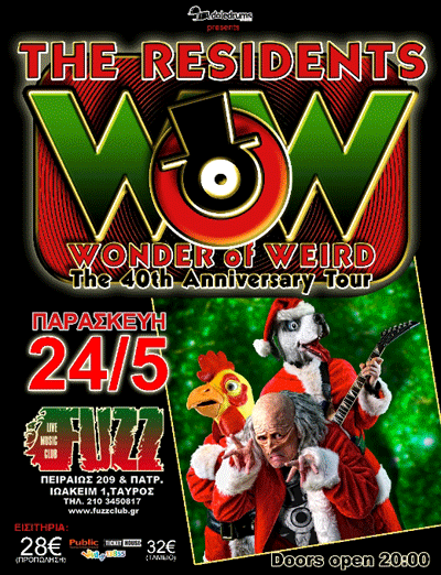 Οι θρυλικοί Residents επιστρέφουν στην Αθήνα, πέντε χρόνια μετά την τελευταία τους επίσκεψη, γιορτάζοντας τέσσερις δεκαετίες πορείας με το Best Of show τους, “Wonder Of Weird / The 40th Anniversary Show”.