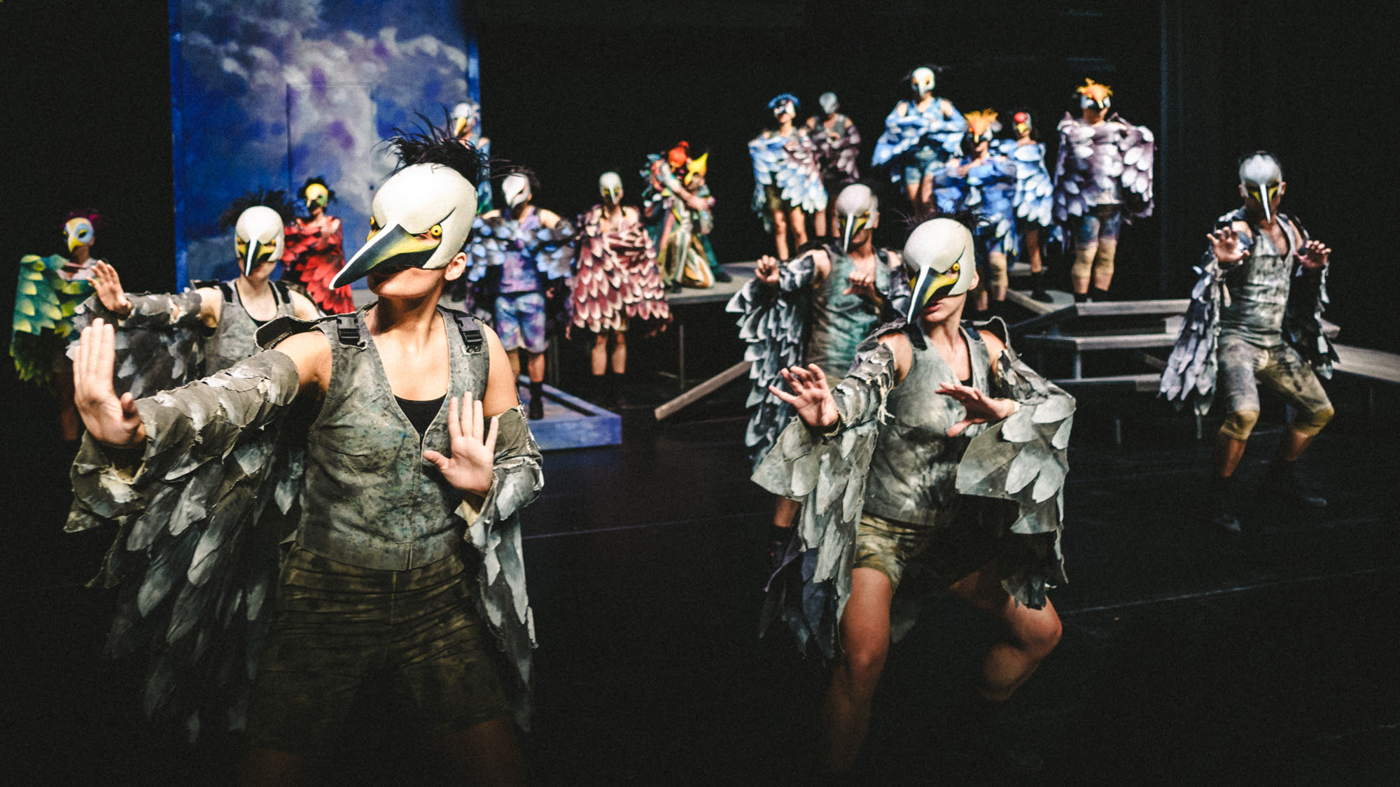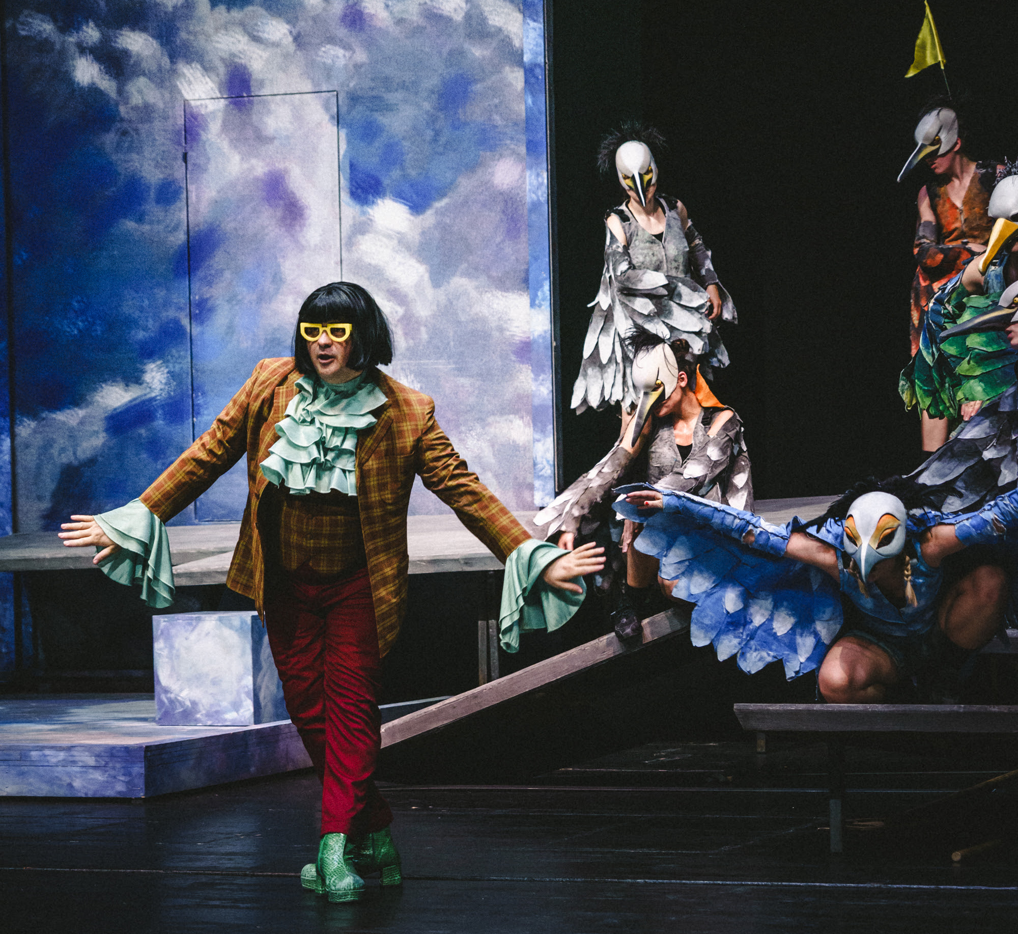 Ο Πεισθέταιρος και ο Ευελπίδης απηυδισμένοι από τη διαφθορά σε πολιτικό, κοινωνικό και οικονομικό επίπεδο, στην οποία έχει περιέλθει η πόλη, φεύγουν για να βρουν τον Τηρέα, τώρα πια Έποπα, κάποτε άνθρωπο, τώρα πια τσαλαπετεινό, για να μάθουν από αυτόν και τα άλλα πουλιά -που πετούν ψηλά και ίσως γνωρίζουν- αν υπάρχει κάποιος τόπος ειρηνικός να πάνε να ζήσουν εκεί. Εκείνος δεν γνωρίζει, και τότε ο Πεισθέταιρος του προτείνει να ιδρύσουν από κοινού μια νέα Πολιτεία -μεταξύ ουρανού και γης- που θα εξουσιάζει ταυτόχρονα θεούς και ανθρώπους και όπου τα πουλιά θα έχουν τη θέση που τους αναλογεί. Πριν ακόμα, καλά- καλά, χτιστεί η νέα Πολιτεία, η φήμη της εξαπλώνεται, γίνεται μόδα ανάμεσα στους ανθρώπους αλλά αυτό αναστατώνει τους θεούς. Επισκέπτες από γη και ουρανό πάνε κι έρχονται και όλοι προσπαθούν να αποκομίσουν οφέλη από την ίδρυσή της. Ο Πεισθέταιρος συνδιαλέγεται με Θεούς και ανθρώπους, συνάπτει ή απορρίπτει συμμαχίες, επιβάλλει τους δικούς του κανόνες-ακόμα και με τη βία- πάντα στο όνομα της Δημοκρατίας, παντρεύεται τη κόρη του Δία και ανακηρύσσεται παντοκράτορας. Η νέα Πολιτεία είναι μια ουτοπία που διέπεται από λογικούς κανόνες και λειτουργεί ως φανταστικό πείραμα. Τι θα γινόταν αν η ανθρώπινη λογική δοκίμαζε τα όρια της πιο αδιαμφισβήτητης(;) εξουσίας; Ο Αριστοφάνης με εργαλεία του τη σάτιρα και τη φαντασία, καταφέρνει να μετουσιώσει την πίκρα και την αγανάκτηση σε κωμικότητα και να αναδείξει ακόμα μια φορά τη λυτρωτική λειτουργία του γέλιου.