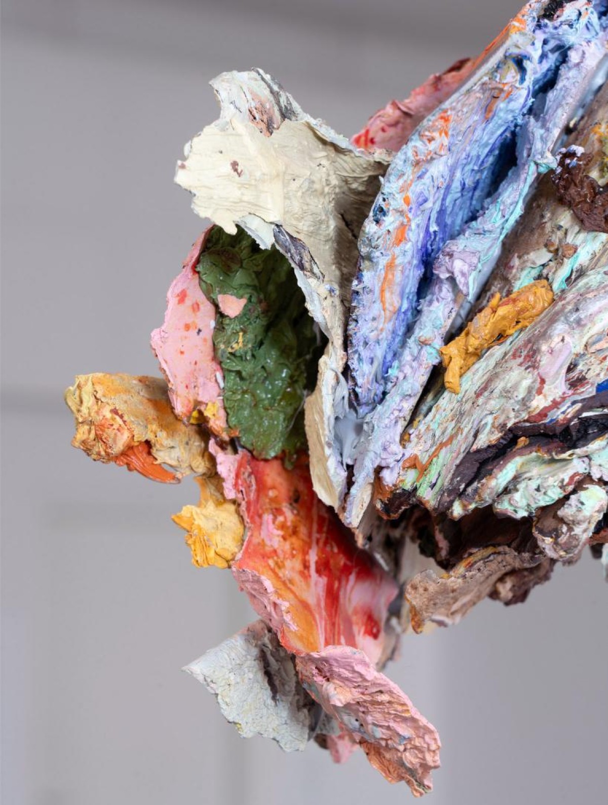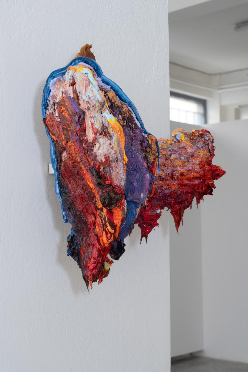 Η συγκεκριμένη ενότητα, με τίτλο Fragments and Dust, δουλεύεται χρόνια, και το βασικό ερώτημα που θέτω –αρχικά στον εαυτό μου– είναι το πώς μπορώ να βρω έναν άλλο τρόπο ζωγραφικής και γλυπτικής με την ύλη της λαδομπογιάς. Πώς μπορώ να φέρω την τεράστια ιστορία και παράδοση που διακατέχει τη ζωγραφική της ελαιογραφίας στο σήμερα, μέσα από μία σύγχρονη εικαστική πρόταση;