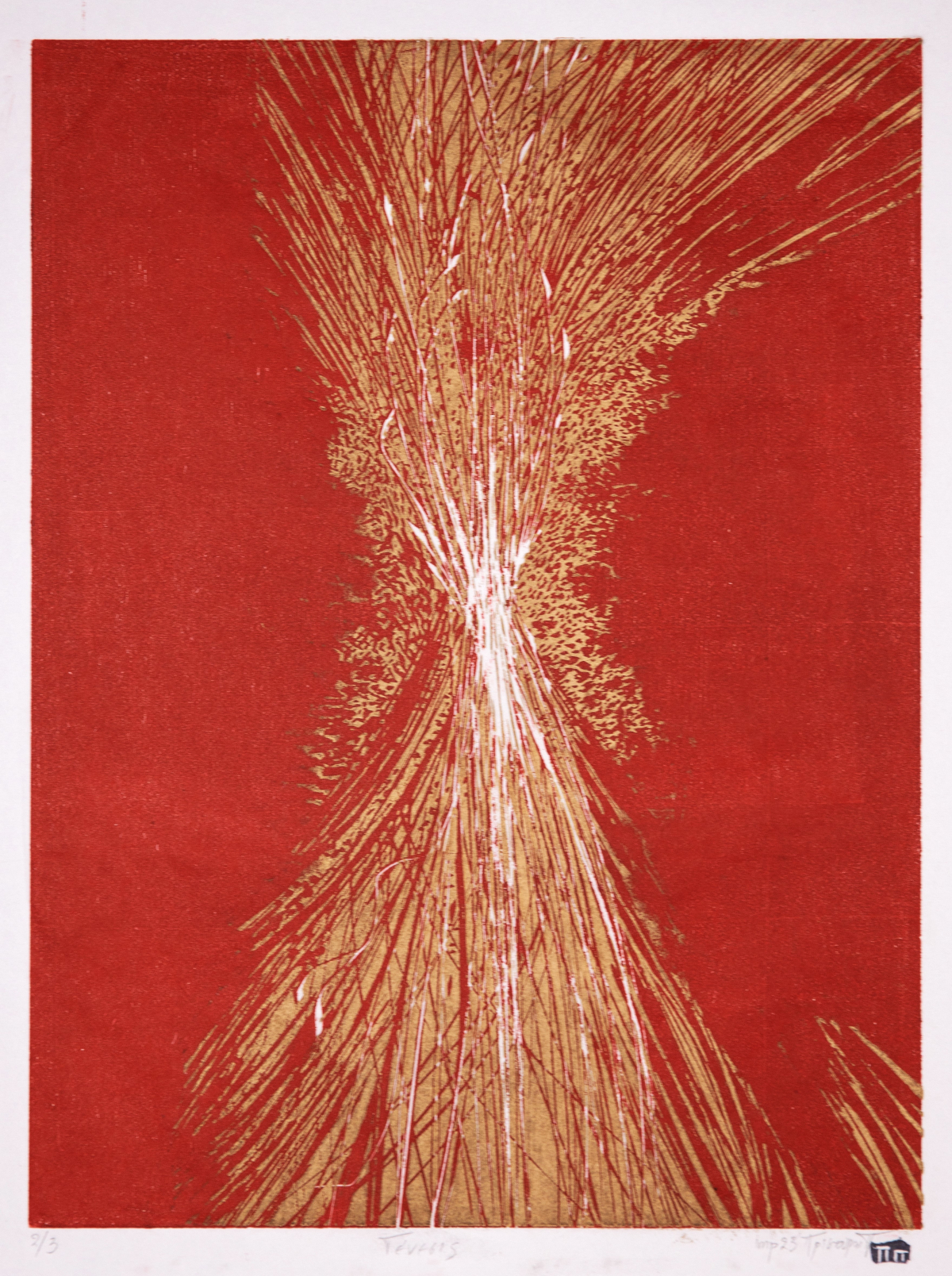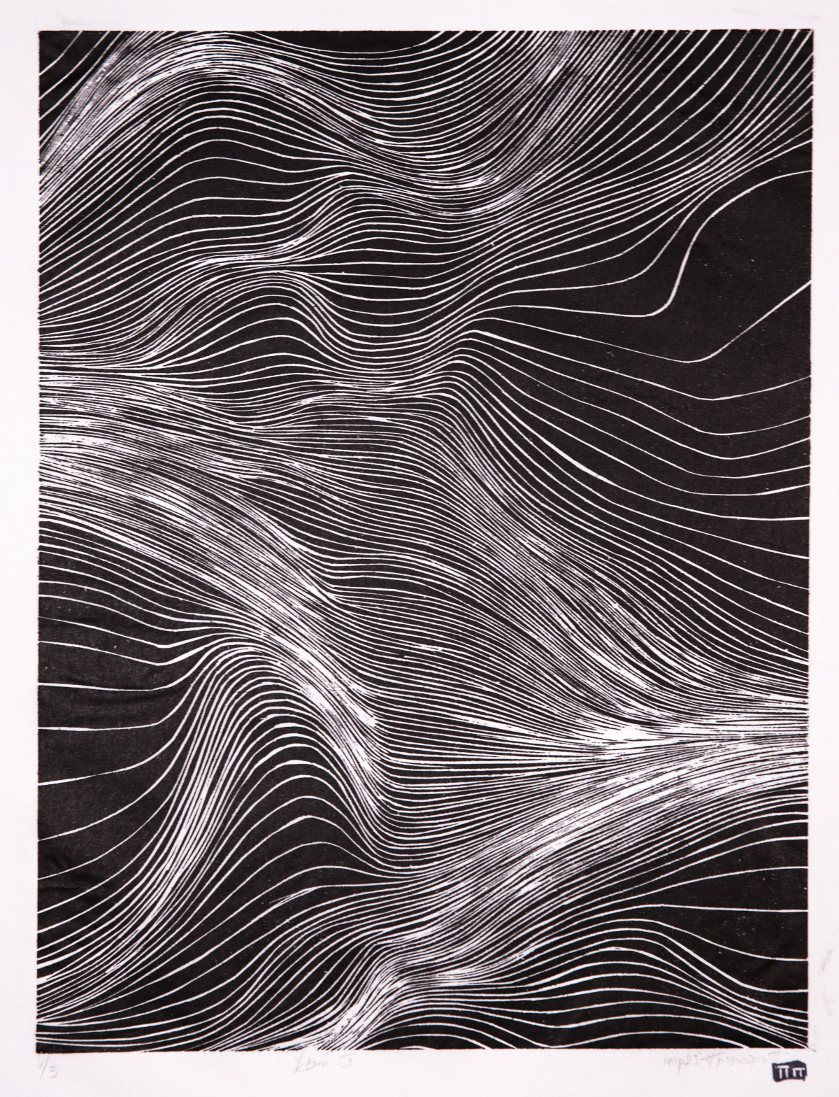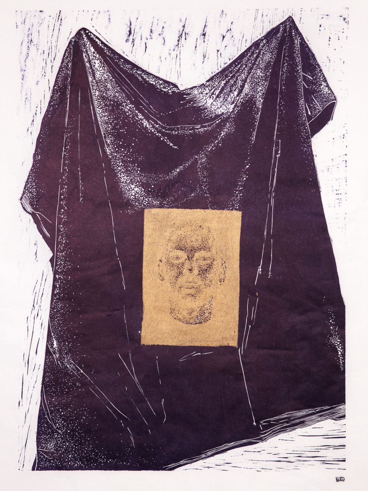 Κεντρική φωτογραφία θέματος: «Ανέγγιχτος», 15 x 20cm, Έγχρωμη ξυλογραφία σε MDF, 2023 (λεπτομέρεια έργου)