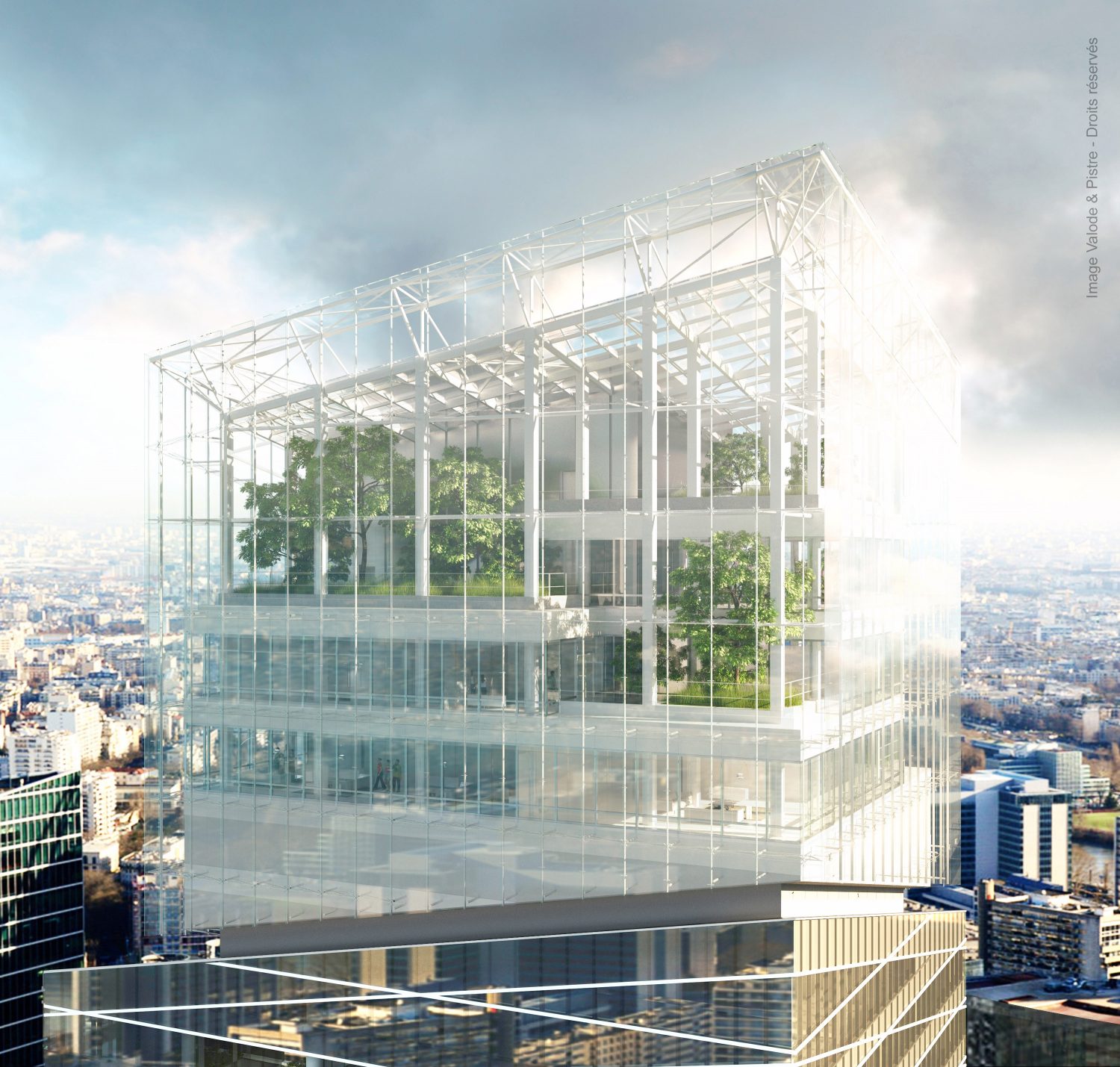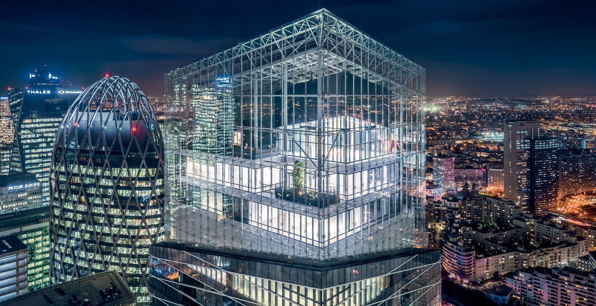 Οι αρχιτέκτονες είχαν ως στόχο να γεννούν συναισθήματα με το σχέδιό τους, το οποίο παραπέμπει σε γλυπτό, κάνοντας χρήση μιας νέας δυναμικής γεωμετρίας: ρομβόεδρα (το ρομβόεδρο είναι κύβος με όψεις που παραπέμπουν σε έδρες διαμαντιού ή πρίσματα αντί για ορθογώνια τετράγωνα). Η εκφραστική μορφολογία του ουρανοξύστη τον κάνει να μοιάζει ότι υπερίπταται του εδάφους. Είναι διαμορφωμένος σε τρία τμήματα: το κυρίως τμήμα όπου φιλοξενούνται τα γραφεία, το κατώτερο επίπεδο όπου στεγάζονται οι υπηρεσίες και το άνω τμήμα ή «Plein Ciel (Ανοιχτός Ουρανός)».