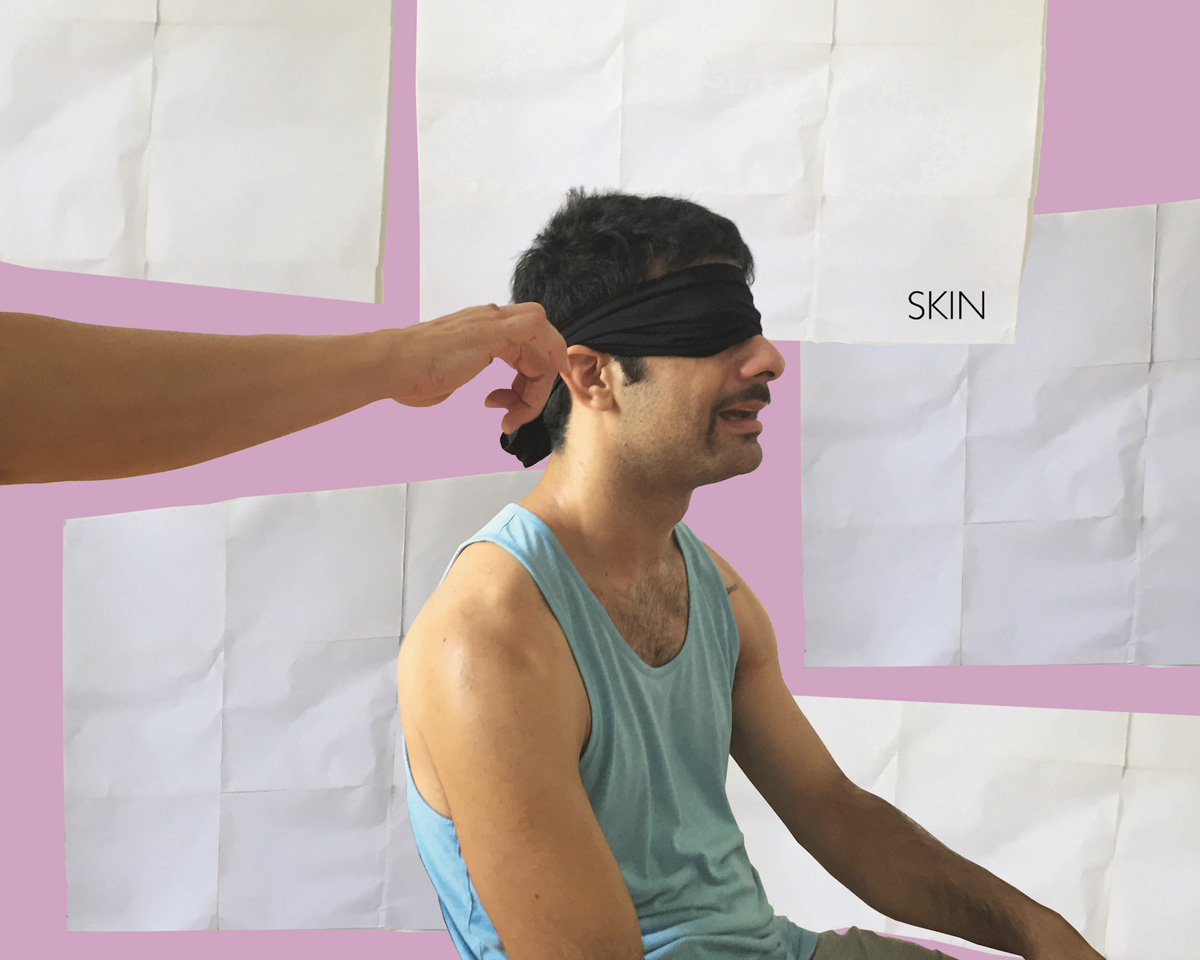 Το έργο SKIN είναι μία ασφαλές συνθήκη για να εμπιστευτεί κανείς την ύπαρξη του στους άλλους. Συγκεκριμένα είναι μια παράσταση για ένα άτομο που λειτουργεί μέσα από την ενεργοποίηση των αισθήσεων της αφής και της ακοής. Ο/Η συμμετέχοντας κλείνει τα μάτια και οι τρεις περφόρμερς αντιμετωπίζουν το σώμα του/της ως πύλη αντίληψης, δίνοντας του την ευκαιρία να έρθει σε επαφή με μια εύθραυστη και ευαίσθητη μεριά του εαυτού του. Το έργο υπάρχει αποκλειστικά στην αντίληψη και φαντασία του κάθε συμμετέχοντα ο οποίος είναι και ο πρωταγωνιστής του. Με άλλα λόγια, το skin είναι ένα ταξίδι φροντίδας.