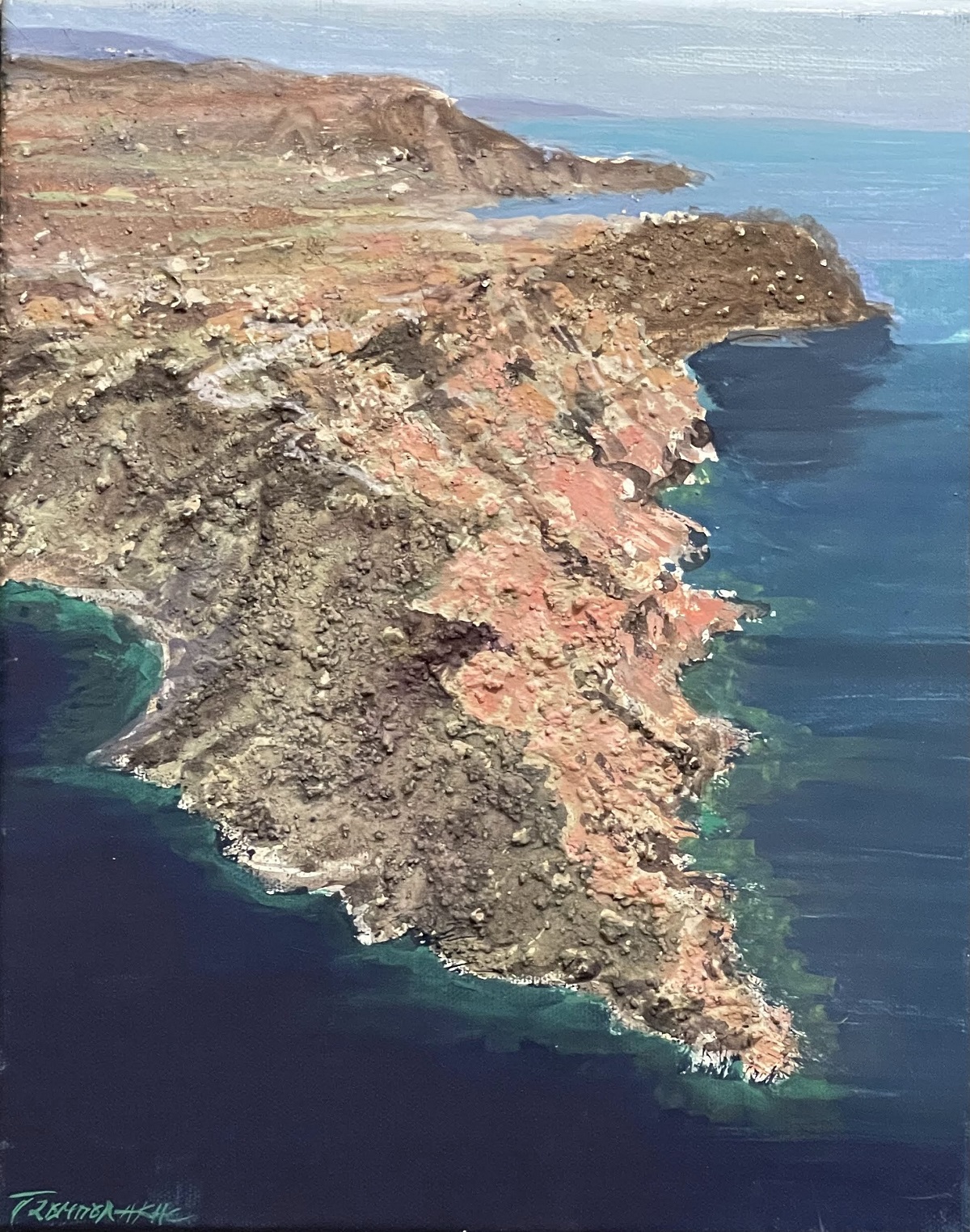 Το σύνολο των έργων αποτελεί την κορύφωση της πολυετούς έρευνας του καλλιτέχνη για το «Αέναο Τοπίο». Όπως λέει ο ίδιος: «Το τοπίο αποτελούσε ανέκαθεν την πηγή της έμπνευσής μου. Θαυμάζω την ποικιλία και την πολυμορφία του. Οι θάλασσες και τα χερσονήσια, οι ξερολιθιές και τα λιβάδια, οι αμμουδιές του, οι γκρεμοί και οι κοιλάδες του ιδωμένα “από αέρος” αποτελούν μετεξέλιξη του Αέναου Τοπίου μου, που με απασχολεί πολλά χρόνια».