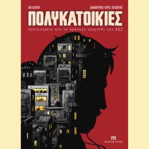 Το Πολυκατοικίες είναι ένα graphic novel εμπνευσμένο από το ομώνυμο τραγούδι του ΛΕΞ – μια αφηγηματική κατάδυση στα χρόνια της οικονομικής κρίσης. Με ρυθμό που θυμίζει βιντεοκλίπ και εικόνες που κινούνται ανάμεσα στο ρεαλιστικό και το αφαιρετικό, ο Δήμος ξετυλίγει τη ζωή που έζησε όσο ήταν μακριά από τον πατέρα του. Το κομμάτι μιας ολόκληρης γενιάς τώρα γίνεται κόμικς από τους Δημήτρη-Κρις Αγκαράι (Σκυλονουάρ, Μιχαήλ Μιχαήλ του Μιχαήλ) και Μι Δέλτα (Νεκρός Χορός, Τερματοφύλακας Γιατρός – Η Ιστορία Συνεχίζεται…).