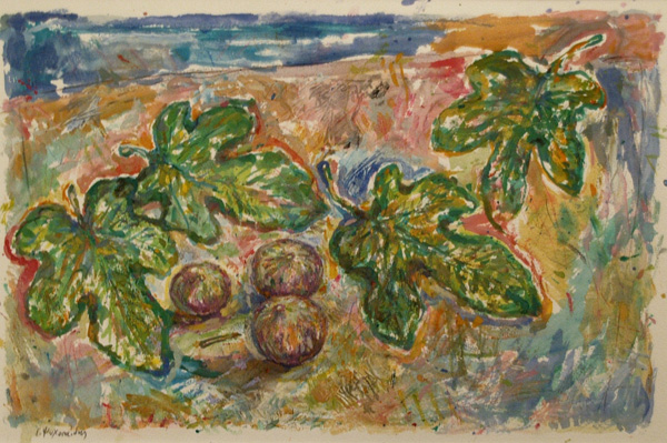 O καθηγητής Χρόνης Μπότσογλου παρουσιάζει ένα τοπίο με μελίσσι από τη σειρά με τοπία που ζωγραφίζει τα τελευταία δέκα χρόνια. Ο καθηγητής Γιάννης Βαλαβανίδης έχει φιλοτεχνήσει μικρές εικόνες του καλοκαιριού σ’ ένα ενιαίο πίνακα καμωμένο με τέμπερες. Ο καθηγητής Τριαντάφυλλος Πατρασκίδης παρουσιάζει μία ανδρική μαύρη φιγούρα με σινική μελάνι. Ο καθηγητής Γιάννης Ψυχοπαίδης ένα τοπίο της Κεφαλονιάς, από αυτά που ζωγραφίζει τα τελευταία δέκα χρόνια όταν επισκέπτεται το νησί και μένει δίπλα στο  σπίτι του μεγάλου Άγγλου ρομαντικού ποιητή του 19ου αιώνα, Βύρωνα. Ο καθηγητής Γιώργος Λαζόγκας παρουσιάζει ένα σχέδιο με γυναικείο γυμνό. Ο καθηγητής Μιχάλης Μανουσάκης παρουσιάζει ένα οβάλ πίνακα μ’ ένα ζευγάρι αγκαλιασμένο, σε κίτρινο και γκρι φόντο. Η καθηγήτρια Μαριάννα Στραπατσάκη παρουσιάζει μία φωτογραφία, video still από την τρικάναλη εγκατάσταση «Άδηλοι Τόποι, Απέραντο Λευκό».Ο Αχιλλέας Δρούγκας παρουσιάζει ένα φωτορεαλιστικό κόκκινο τριαντάφυλλο. Ο Πέτρος Ζουμπουλάκης ένα ορεινό τοπίο με προσκυνητάρι. Η Κατερίνα Ζαχαροπούλου έχει προσφέρει ένα video still από την βίντεοεγκατάσταση Το σπίτι της Πετρονέλα Οορτμαν με τίτλο «Η μετακόμιση». Ο εικαστικός Άγγελος Παπαδημητρίου προσφέρει ένα πολύ επίκαιρο μεγάλο ξύλινο γλυπτό. Μια μαύρη γάτα με άσπρες πιτσιλιές, από την Αμφίπολη. O σουρεαλιστής Άλκης Γκίνης μία ακουαρέλλα με θέμα το εργατικό εισόδημα. Ο σουρεαλιστής ζωγράφος Δημήτρης Γέρος παρουσιάζει ένα θαλασσινό τοπίο μ’ ένα καραβάκι, σύννεφα και ψάρια. Ο Θανάσης Μακρής δείχνει ένα εξαιρετικό τοπίο με ένα σπίτι από τη θάλασσα του Μεσολογγίου. Η φωτογράφος Ελένη Μυλωνά δείχνει ένα video still από την τελευταία έκθεσή της στο Μουσείο Μπενάκη με τίτλο «Το καταραμένο φίδι».