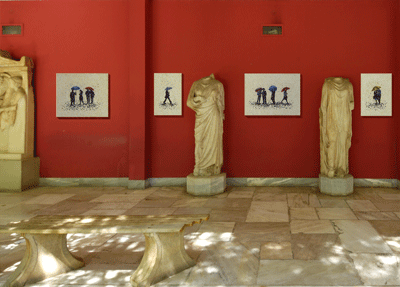 Τελικά η Αγγελίδου θέτει την προβληματική της σχέσης ανθρώπου και περιβάλλοντος, φυσικού και δομημένου, ως σκηνικού όπου κινούνται ανθρώπινες απρόσωπες φιγούρες, δηλωτικές της ταυτόχρονης παρουσίας και απουσίας τους. Τα έργα αυτά της Δάφνης Αγγελίδου, τοποθετημένα στο αίθριο του Εθνικού Αρχαιολογικού Μουσείου και στον ίδιο τόπο με το ρωμαϊκό ψηφιδωτό δάπεδο, γίνονται δηλωτικά της διαχρονικότητας της τέχνης του ψηφιδωτού από την αρχαιότητα μέχρι σήμερα. Ταυτόχρονα η έκθεση αυτή ανταποκρίνεται στους στόχους του Εθνικού Αρχαιολογικού Μουσείου να αποτελεί πολιτιστικό πυρήνα στην καρδιά της πόλης της Αθήνας. Η εικαστικός Δάφνη Αγγελίδου είναι επίκουρη καθηγήτρια στο Εικαστικό Τμήμα της Ανωτάτης Σχολής Καλών Τεχνών Αθήνας, στο εργαστήριο ψηφιδωτού. Έχει σπουδάσει ζωγραφική με τους Γιάννη Μόραλη και Δημήτρη Μυταρά και ψηφιδωτό με τον Γιάννη Κολέφα στην ΑΣΚΤ. Έχει πραγματοποιήσει δέκα ατομικές εκθέσεις (Γκαλερί 7, Καλλιτεχνικό και Πνευματικό Κέντρο «ΩΡΑ», Χώρος Τέχνης 24, κ.ά.), και έχει λάβει μέρος σε εκατό περίπου ομαδικές-θεματικές εκθέσεις στην Ελλάδα και στο εξωτερικό. Έργα της βρίσκονται σε δημόσιες και ιδιωτικές συλλογές, σε μουσεία και πινακοθήκες στην Ελλάδα και στο εξωτερικό.