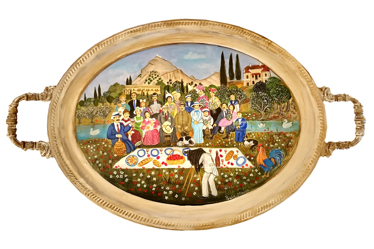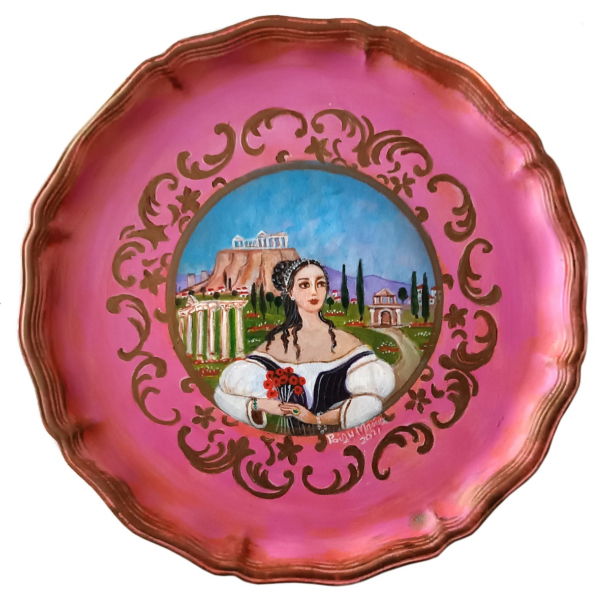 Η έκθεση «Ωραίες των Δίσκων» αναβιώνει πρόσωπα και τοπία της ελληνικής ιστορίας, από τους ήρωες της Επανάστασης μέχρι τις προσωπικότητες της Μικρασιατικής Καταστροφής. Η δημιουργός ζωγραφίζοντας σε παλιούς μεταλλικούς δίσκους σερβιρίσματος, φιλοτεχνεί μια συναρπαστική συλλογή που φωτίζει τις ιστορικές και πολιτιστικές σχέσεις μεταξύ Ανατολής και Δύσης.