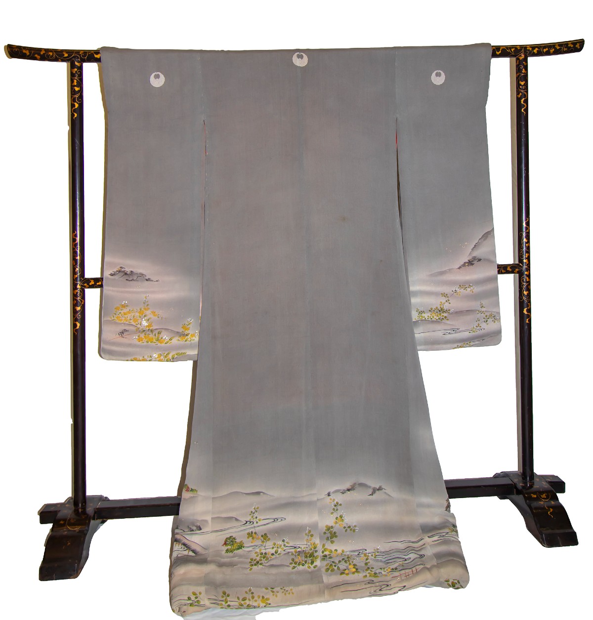 Στη συνέχεια, ξεδιπλώνεται η τέχνη των πολύτιμων μεταξωτών υφασμάτων, καθώς η κλωστοϋφαντουργία υπήρξε μια από τις κορυφαίες μορφές έκφρασης του Ιαπωνικού πολιτισμού, για να καταλήξει στο εμβληματικό κιμονό: κύριο ένδυμα για άνδρες και γυναίκες όλων των τάξεων της ιαπωνικής κοινωνίας, από τον 16ο αιώνα, με περίτεχνα σχέδια και ιδιαίτερους συμβολισμούς.