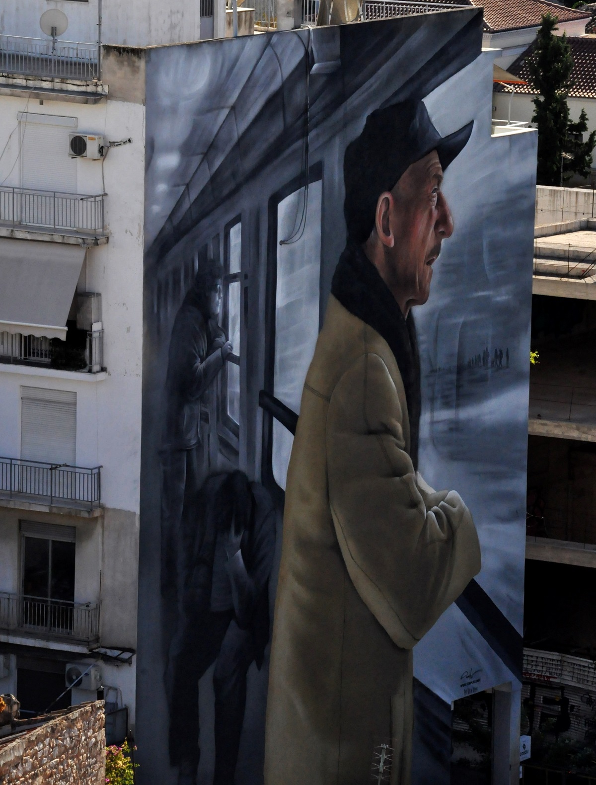 Εμπνευσμένο από το φετινό θέμα του φεστιβάλ Το Μικρό Παρίσι των Αθηνών 2022 “Το 1922, πυλώνας στο σήμερα”, ο καλλιτέχνης αποτυπώνει στο κεντρικό πρόσωπο της τοιχογραφίας, την αγωνία που υπάρχει για το νέο ταξίδι της ζωής, τον καημό για όσα άφησε πίσω, ενώ μπροστά του περνάνε φιγούρες που ίσως έχουν την ίδια μοίρα. Οι συνεπιβάτες δίπλα του φανερά συντετριμμένοι, όπως κάθε άνθρωπος που ξεριζώνεται από τον τόπο του.