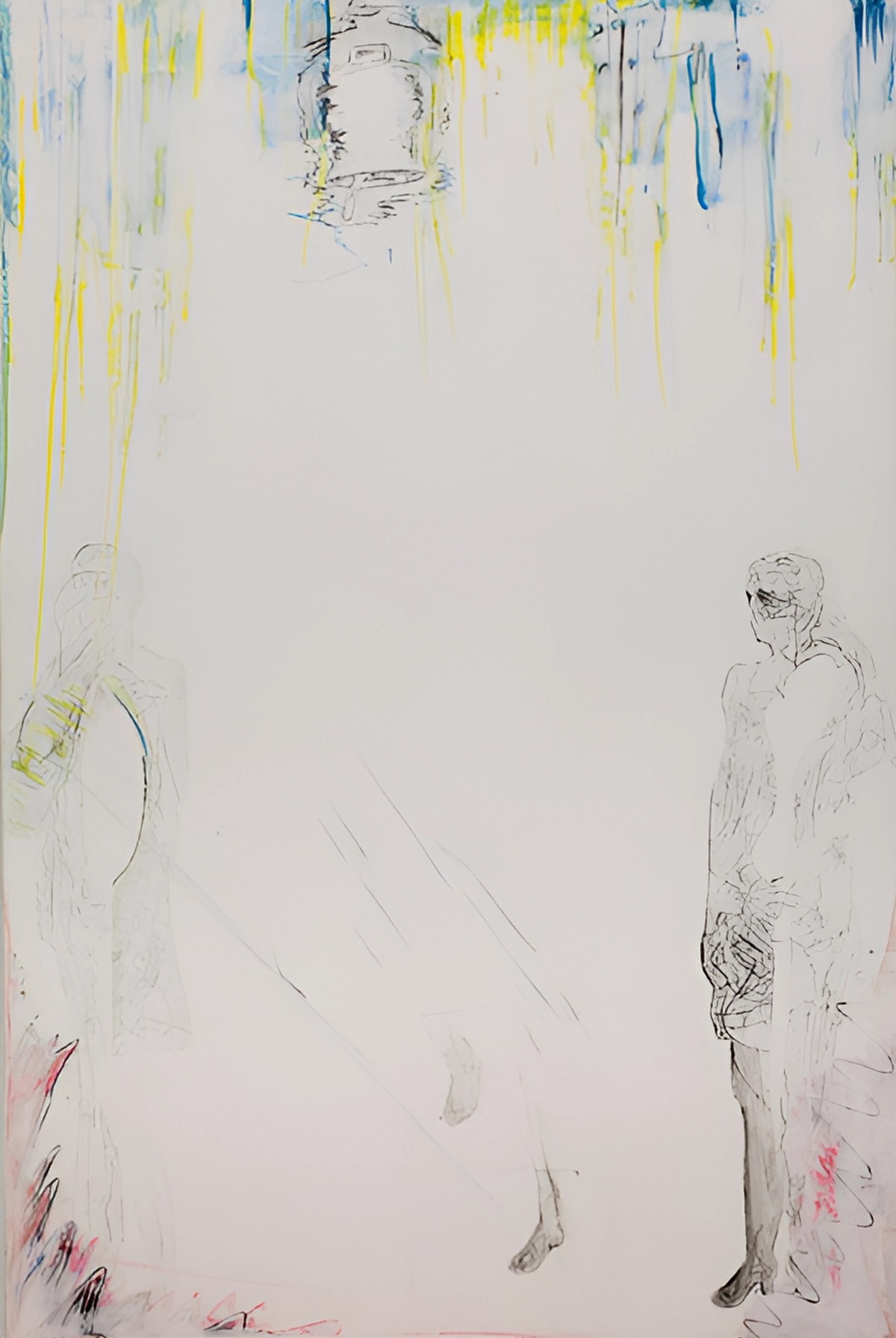 Ο μαυρόασπρος πλούτος των κινηματογραφικών εικόνων συναντιέται και συνομιλεί με τη χρωματική έξαρση και τη σχεδιαστική πυκνότητα της ζωγραφικής σε μια δυναμική ώσμωση φωτός και σκιάς. Ζωγραφική και κινηματογράφος ανιχνεύουν υπαρξιακά την κοινή συνισταμένη των κραδασμών τους.”