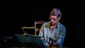Στην παράστασή μας ο ρόλος του είναι άλλοτε μελωδικός, άλλοτε ρυθμικός, αρμονικός ή αντιστικτικός, με ένα πολύ ευρύ συχνοτικό φάσμα. Κάνει σόλο και ταξίμια. Μαζί με αυτά, το γεγονός ότι χρησιμοποιώ και διάφορα πετάλια, εφέ και λουπαδόρο – καθώς θέλουμε στην αφήγησή μας να δείξουμε το πέρασμα από το ημίφως του καντηλιού της προηλεκτρικής εποχής στη σύγχρονη – προσφέρει ακόμη περισσότερες ηχητικές δυνατότητες.