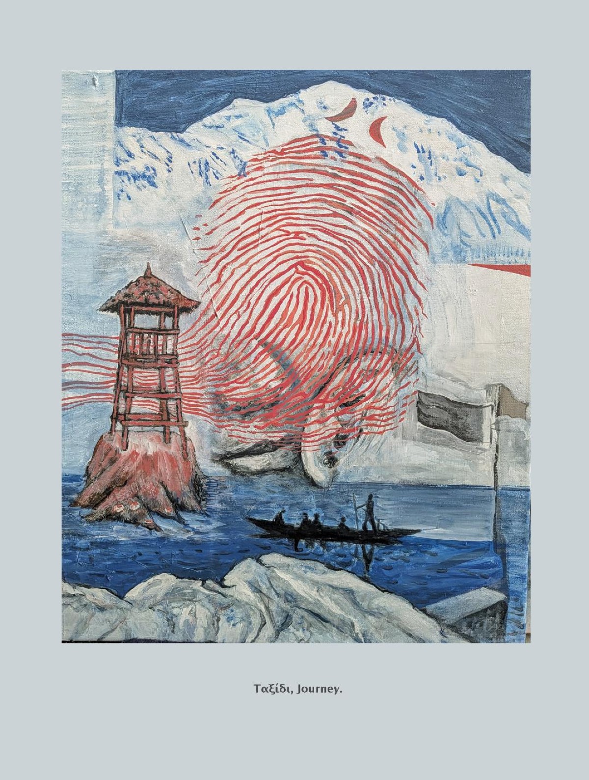 Ο καλλιτέχνης, ανασυνθέτει εικόνες οικείες και γνωστές, όπου μέσα από την δική του εικαστική γραφή, η οποία εναλλάσσεται και εξελίσσεται στο χρόνο, από την αφαίρεση στην παράσταση, τον υπε-ρεαλισμό, στο όνειρο και την μυθοπλασία, δημιουργεί έναν προσωπικό σύμπαν, που συνυπάρχουν: πρόσωπα, μορφές, στοιχεία της φύσης και υπερ-μεγεθυμένα αντικείμενα- κυρίως στα πρόσφατα έργα του- αντικείμενα καθημερινής χρήσης, που τους προσδίδονται σχεδόν μυθικές ιδιότητες. Στα έργα του, είναι οφθαλμοφανής ο νόστος, που ενώ γειτνιάζει με του Οδυσσέα, μοιάζει να έχει τελικό προορισμό και αφετηρία μιαν Ιθάκη που στέκει ορθή, ρεαλιστική και απτή κάθε στιγμή, μια ψυχική πατριδογνωσία χωρίς αποκλείσεις. ‘’Στην μακρινή άκρη του κόσμου, ταυτόχρονα στο κέντρο και την αφετηρία του δικού μου χρόνου, εκεί στην αρχή της απέραντης αιωνιότητας της Μεσογείου, επιθυμούσα από έτη πολλά του παρελθόντος, να παρουσιάσω, λίγα από τα εικαστικά έργα που έφτιαξα και που τελικά είναι μια βιογραφία ζωής’’, όπως ο ίδιος δηλώνει.