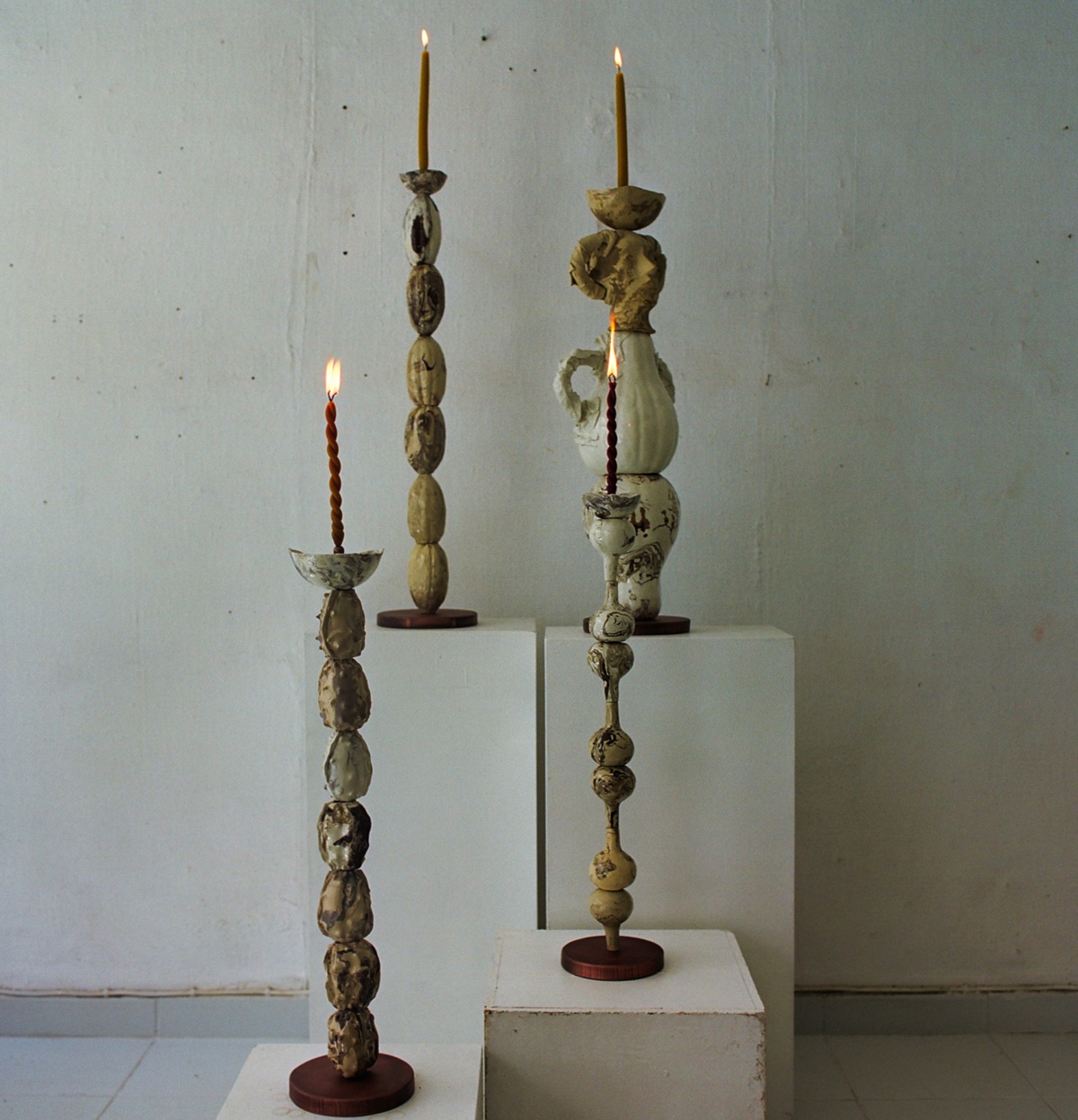«Τα κεραμικά γλυπτά-κηροπήγια που θα παρουσιάσω φέτος το καλοκαίρι στη γκαλερί της Γεωργίας Τσέρη στα Κύθηρα αποτελούν μέρος της σειράς Cucumis Melo Lamps. Τα κεραμικά αυτά τοτέμ, εμπνευσμένα από τα καλοκαιρινά φρούτα, αποκτούν μια νέα διάσταση μέσα από την προσθήκη του κεριού και της φλόγας, και συνομιλούν με τα ζωγραφικά έργα του αγαπημένου μου καλλιτέχνη Στέφανου Ρόκου.