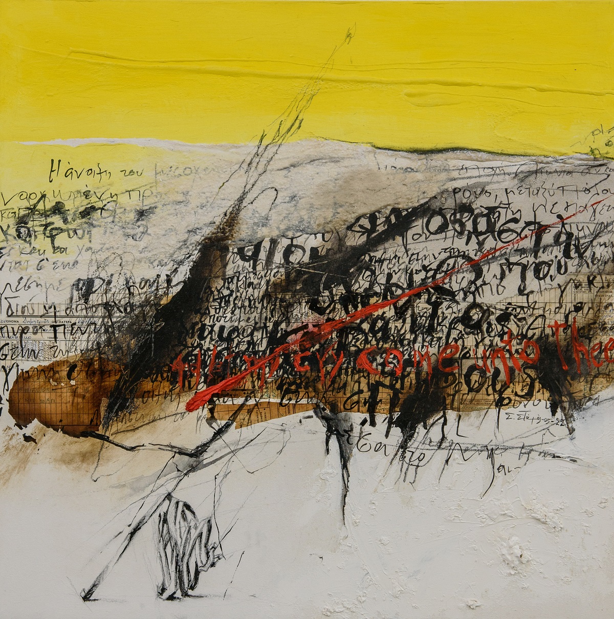 Οι αδιήγητες ιστορίες, οι διαλογικοί λαβύρινθοι, το συλλογικό βάσανο και τα προσωπικά βιώματα συνυπάρχουν αρμονικά στο έργο του Στέργιου Στάμου. Μαθητής και άξιος συνεχιστής του Βαγγέλη Δημητρέα, ο Στάμος δείχνει ιδιαίτερη ευαισθησία απέναντι στα φλέγοντα κοινωνικοπολιτικά ζητήματα του καιρού μας, όπως είναι η οικονομική κρίση, το προσφυγικό, η ανθρωπιστική καταστροφή και οι θανάσιμες συνέπειες -οι συμφορές- του πολέμου, εν προκειμένω του συριακού εμφυλίου και της ρωσοουκρανικής σύγκρουσης. Αποφεύγοντας την επανάληψη, την καταγγελτική διάθεση και τον διδακτισμό, ο καλλιτέχνης εστιάζει στην υπαρξιακή αφύπνιση. Η ζωγραφική και οι γλυπτικές εγκαταστάσεις του είναι αποτέλεσμα μιας εξπρεσιονιστικής γραφής στον χώρο και στον χρόνο. Τα έργα του Στάμου είναι οχήματα πηγαίας έκφρασης που μεταφέρουν φιλοσοφικές έννοιες, κωδικοποιημένα μηνύματα, δυσανάγνωστες φράσεις, συμπτυγμένες λέξεις και εμπειρίες, μια γλώσσα βιωμένη όσο και αποδομημένη.