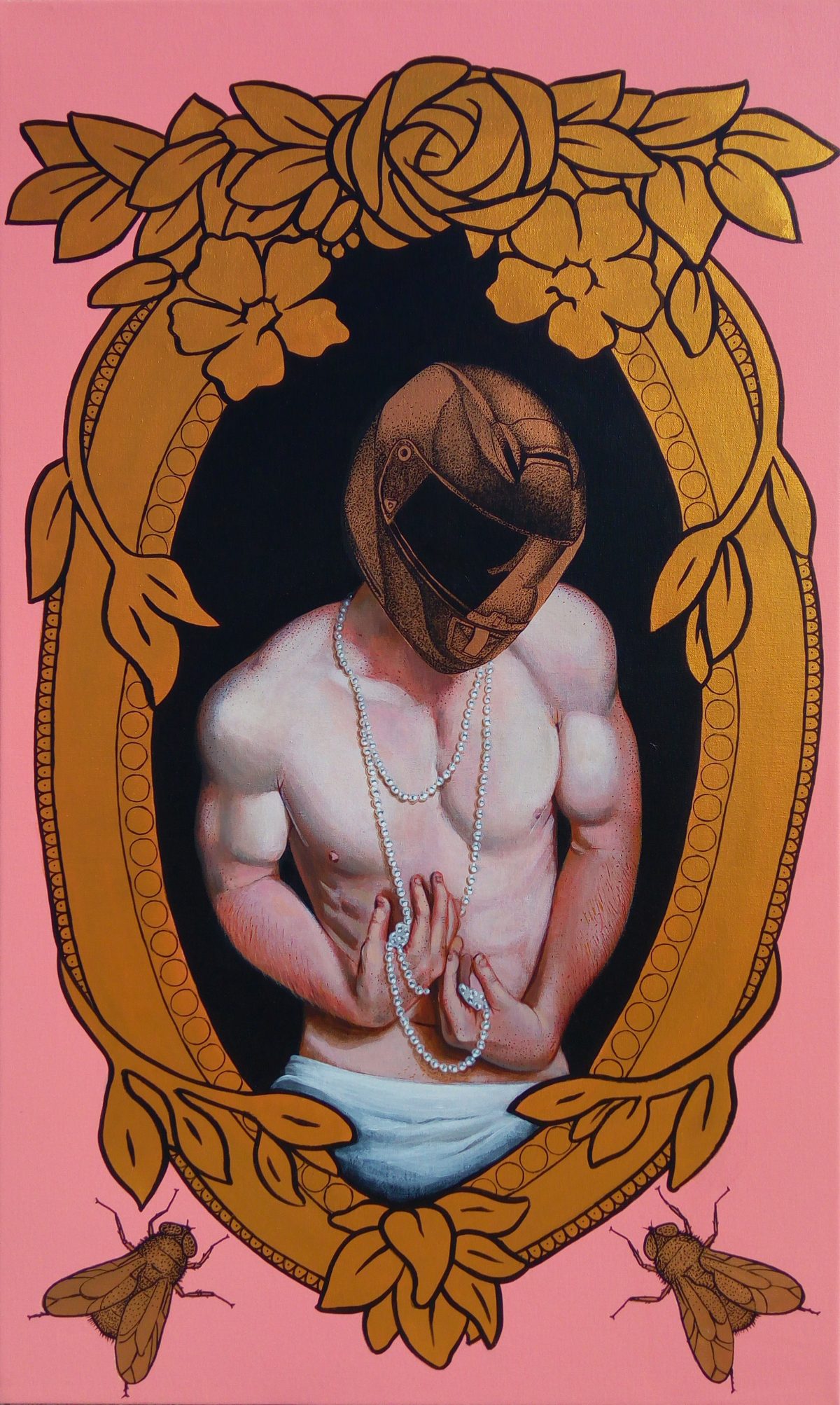 Στην ενότητα έργων του με τίτλο Taboo, ο Σταμάτης Θεοχάρης –με μια γραφή που παραπέμπει σε μια pop αισθητική καθώς και σε μια vintage ομοερωτική-kinky εικονογραφία– δημιουργεί ένα σύνθετο πλέγμα αναφορών, εστιάζει στα όρια και τη ρευστότητα των έμφυλων ταυτοτήτων, της θηλυκότητας και της αρρενωπότητας, σχολιάζει τους αντρικούς και γυναικείους ρόλους, τις βεβαιότητες και τις στερεοτυπικές αντιλήψεις για αυτούς. Στις συνθέσεις του –διαπνεόμενες από ανατρεπτικό-σουρεαλιστικό πνεύμα, ειρωνική διάθεση, αλλά και μια αφοπλιστική και αναρχική αίσθηση του χιούμορ– το ανδρικό και το γυναικείο σώμα εκτίθενται ως ηδονικές εικόνες, σε ένα διαρκές παιχνίδι μεταμφιέσεων και μεταμορφώσεων, εναλλαγών και συνεχών επαναπροσδιορισμών, με άξονα την υπέρβαση των κοινωνικών προκαταλήψεων και των ενοχικών συναισθημάτων, των καταπιεσμένων επιθυμιών και των ταμπού.