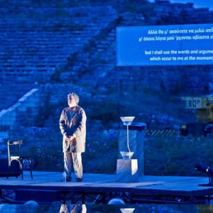 Πλάτωνα, Απολογία Σωκράτη από τον Δήμο Αβδελιώδη στο Αρχαίο Θέατρο Αιγείρας